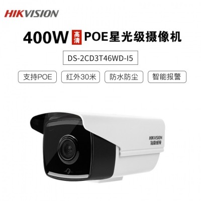 海康威視監(jiān)控攝像機400萬POE超高清監(jiān)控攝像頭星光夜視紅外50米