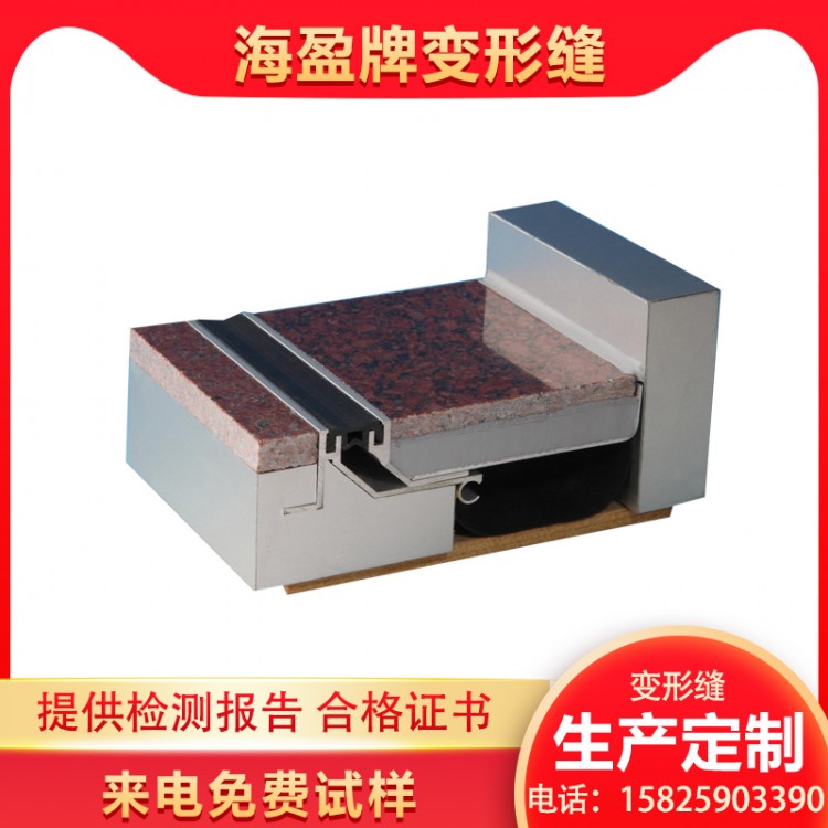 1)建筑變形縫裝置由不銹鋼型材、鋁合金板(或不銹鋼板)、橡膠嵌條及各種專用膠條等組成。