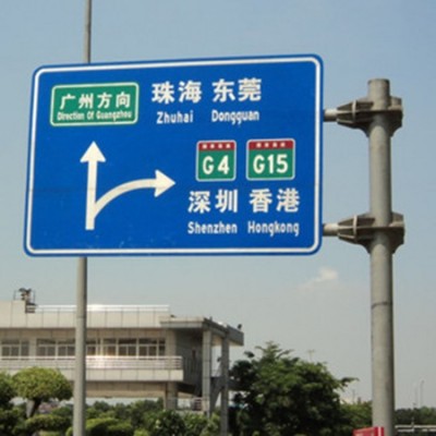 高速公路指示牌搭配標(biāo)志桿是常用規(guī)格為優(yōu)質(zhì)鋼板經(jīng)大型折彎?rùn)C(jī)加工成型為圓形,八邊形或六邊形,或由矩形方管拼裝焊接加工成型,表面經(jīng)過(guò)熱鍍鋅防腐處理,外表面噴塑處理,適用于城市道路,快速通道,高架橋十字路口或T字路口。