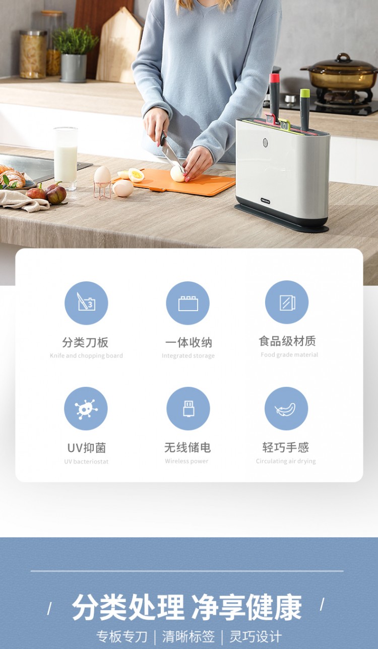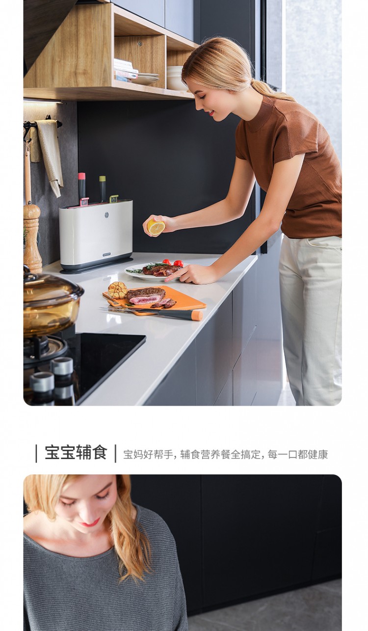 2.UV抑菌。智能護理廚具,拒絕病從口入,一鍵開啟紫外線抑菌,提高食品安全。