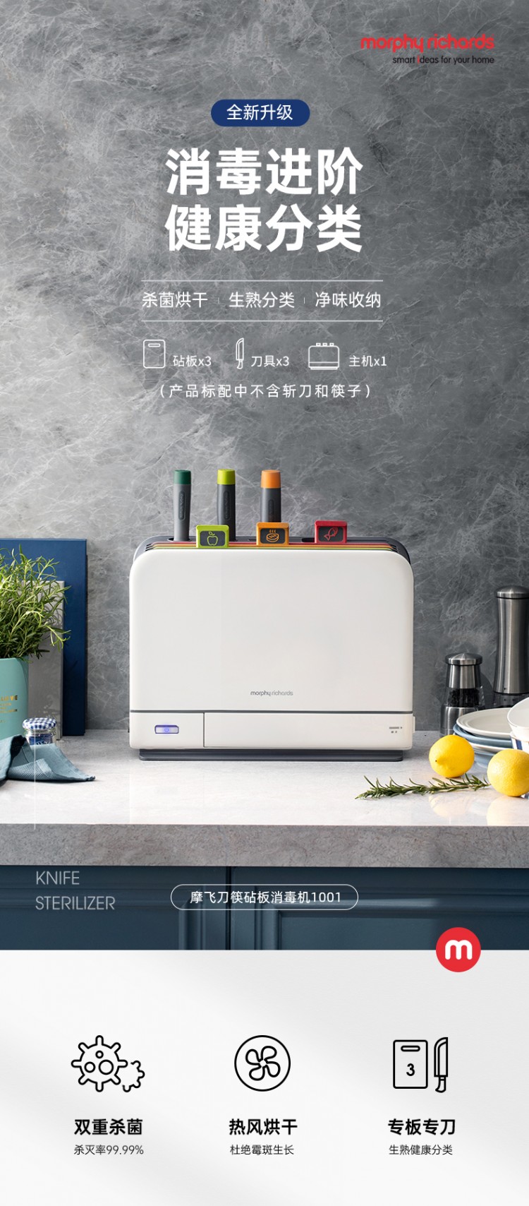 摩飛刀筷砧板消毒機 摩飛MR1001刀具套裝 家用筷子筒紫外線消毒機熱風(fēng)烘干器分類菜板