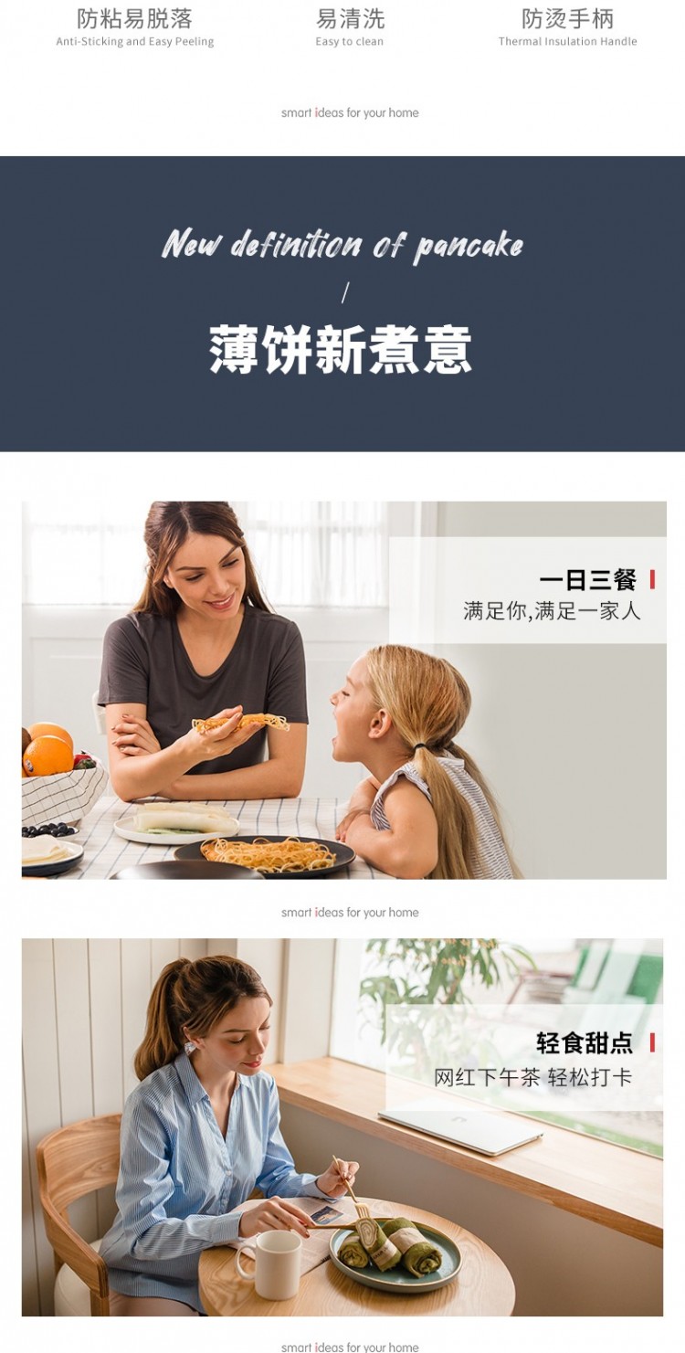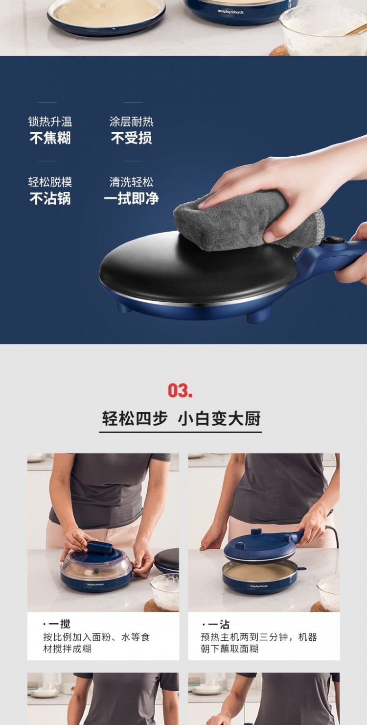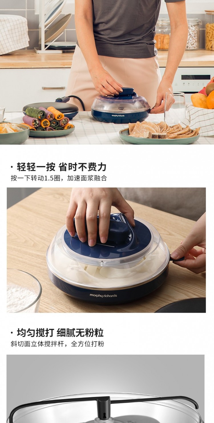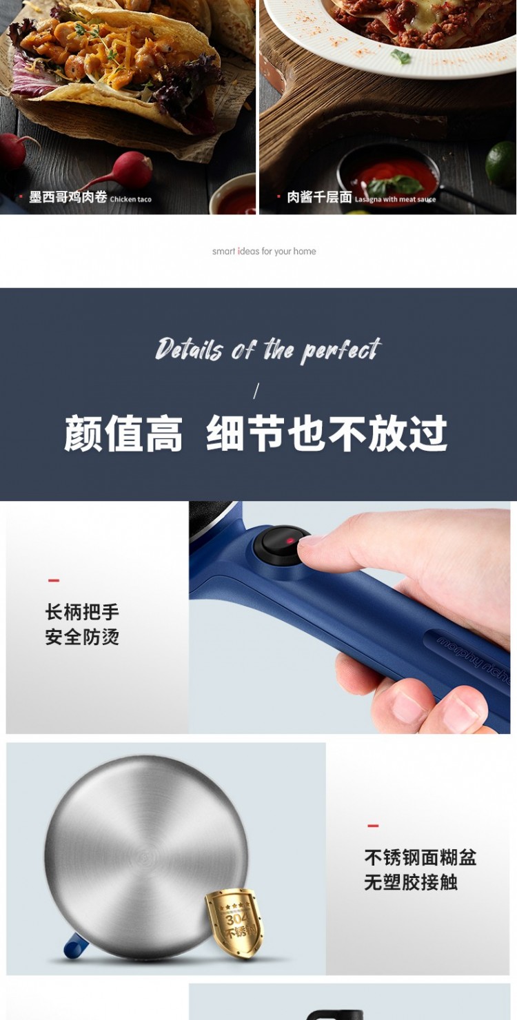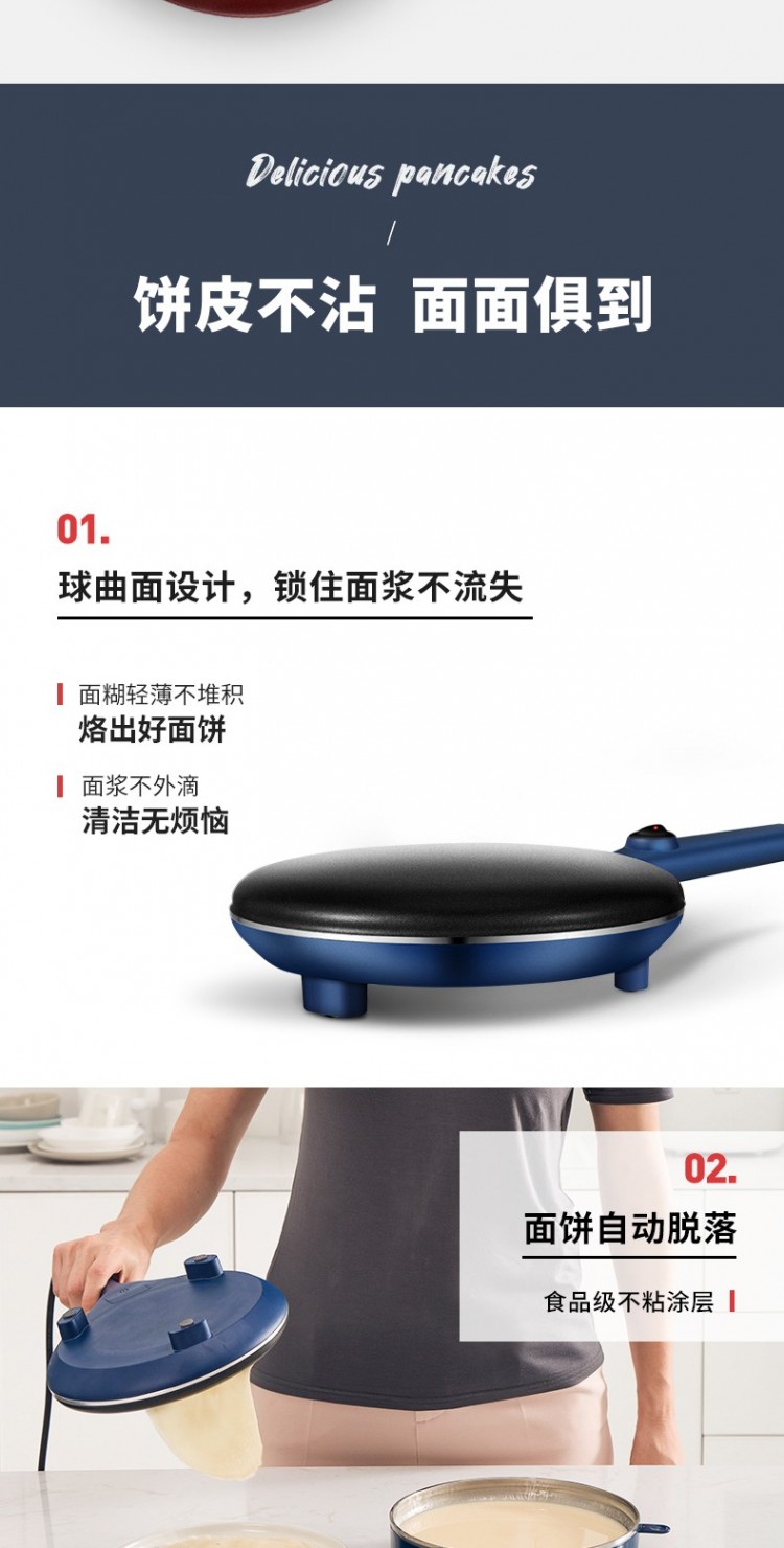 詳細(xì)信息 1.一體式和面。自帶和面盤,輕松攪打細(xì)膩面糊。 2.快速出餅。700w大功率加熱,特殊灌包技術(shù)均勻加熱,美味不用等。 3.不粘易脫落。食品級(jí)特氟龍涂料+球曲面設(shè)計(jì),面糊輕薄,熟后自動(dòng)脫落。 ![]() ![]() ![]() ![]() ![]() ![]() ![]() ![]() ![]() ![]() ![]() ![]() ![]()  |