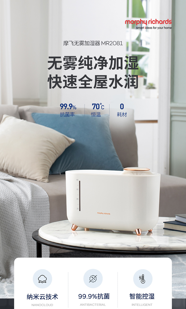 1.無(wú)霧加濕。無(wú)霧恒溫加濕,加速水潤(rùn),純凈健康。