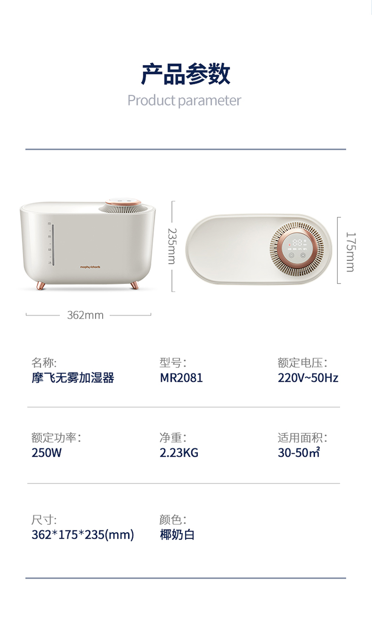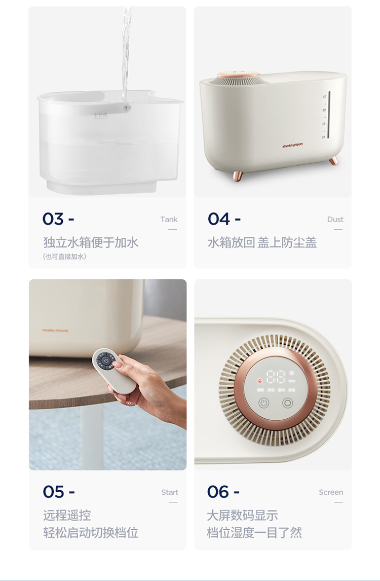 詳細(xì)信息 1.無(wú)霧加濕。無(wú)霧恒溫加濕,加速水潤(rùn),純凈健康。 2.智能控濕。精準(zhǔn)感應(yīng),智能調(diào)控濕量,不過(guò)度加濕。 3.四季適用。加強(qiáng)、睡眠、冷氣、暖氣四大智能模式,一年四季都水潤(rùn)舒適。 4.遠(yuǎn)程遙控。6米無(wú)死角射頻遙控器,任意姿勢(shì)開(kāi)啟設(shè)置程序。 5.觸屏數(shù)顯。輕觸選擇模式,模式固定后顯示屏亮度降低,減少光線干擾。 ![]() ![]() ![]() ![]() ![]() ![]() ![]() ![]() ![]() ![]() ![]() ![]() ![]() ![]() ![]() ![]() ![]() ![]() ![]() ![]() ![]() ![]() ![]() ![]() ![]() ![]() ![]()  |