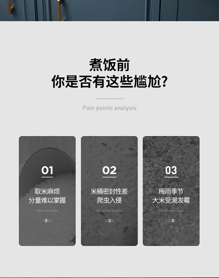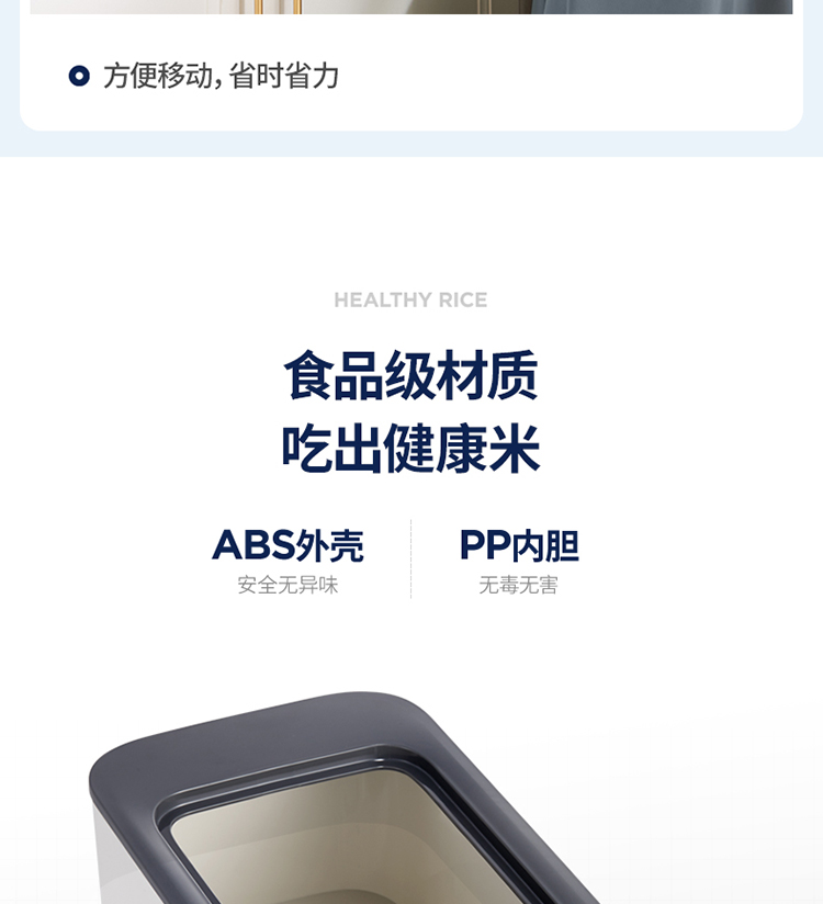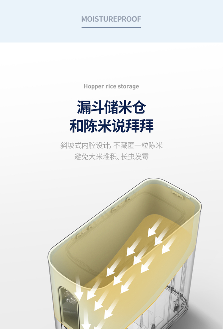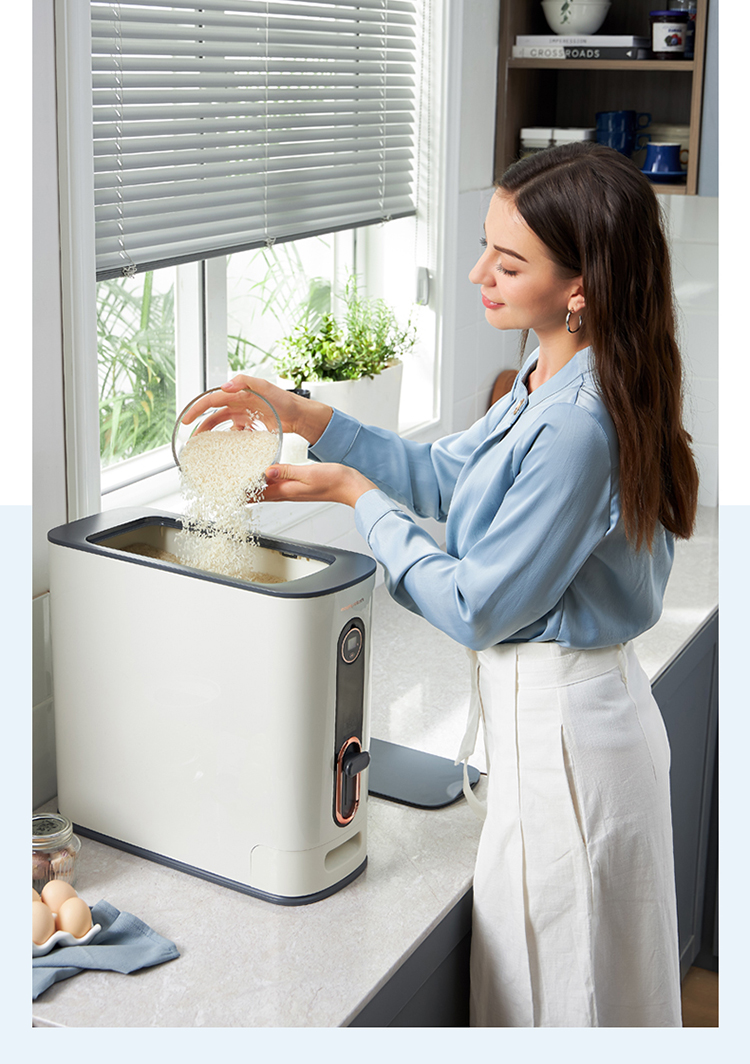 2.鎖住新鮮。儲(chǔ)米箱體密封結(jié)構(gòu),有效防蟲防潮,安心存放。