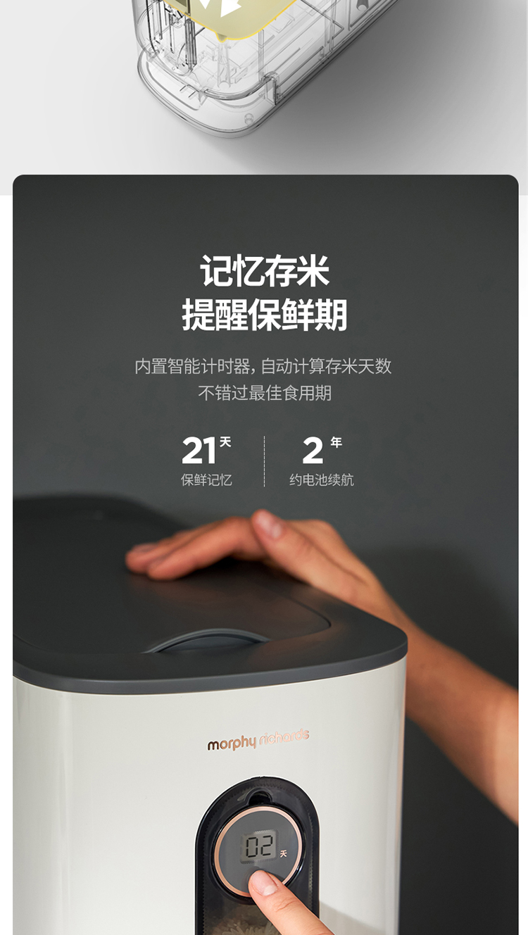 摩飛智能米桶 摩飛MR2090智能計(jì)量家用防蟲防潮面粉儲(chǔ)存罐米缸米箱12公斤裝帶蓋收納盒
