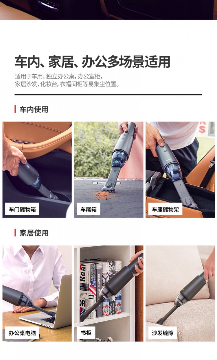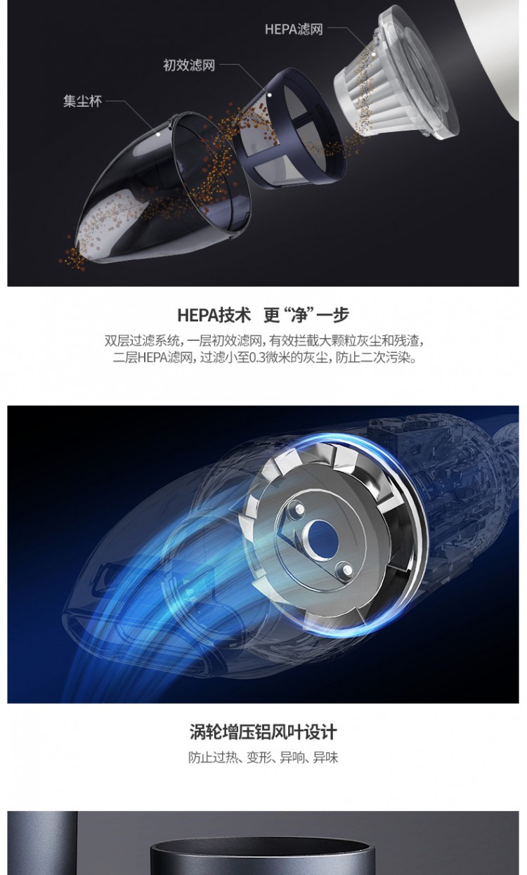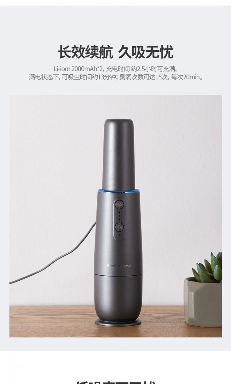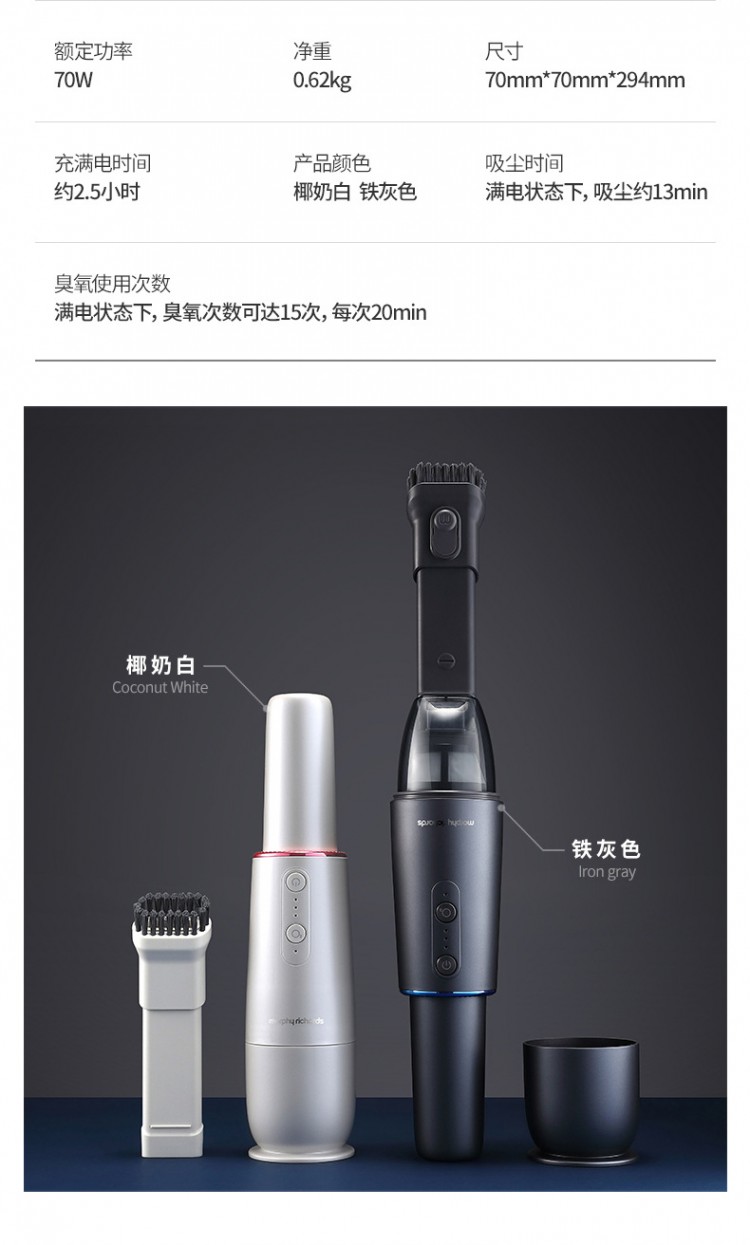 2.無線長續(xù)航。無線儲電,操作更自由,滿電可持續(xù)吸塵13分鐘、臭氧達15次。
