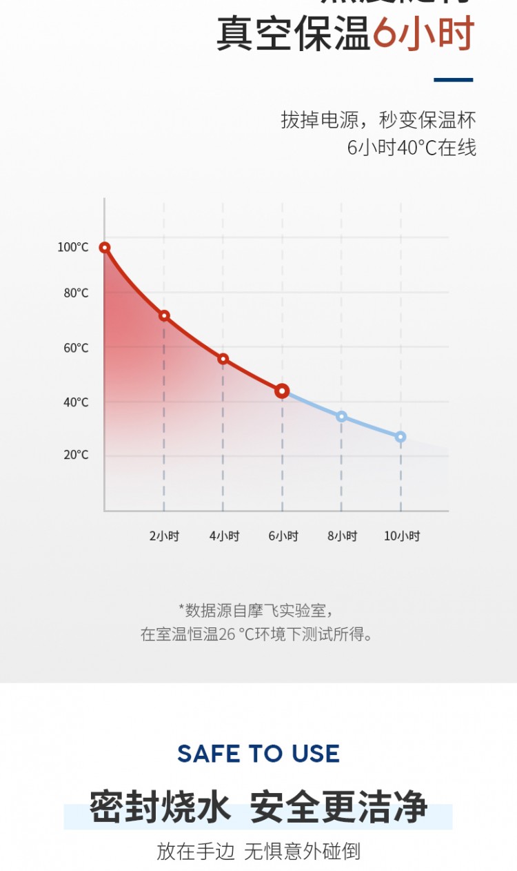 2.6H長(zhǎng)效保溫。雙層真空保溫,6小時(shí)40℃在線,每一口都溫暖入心。