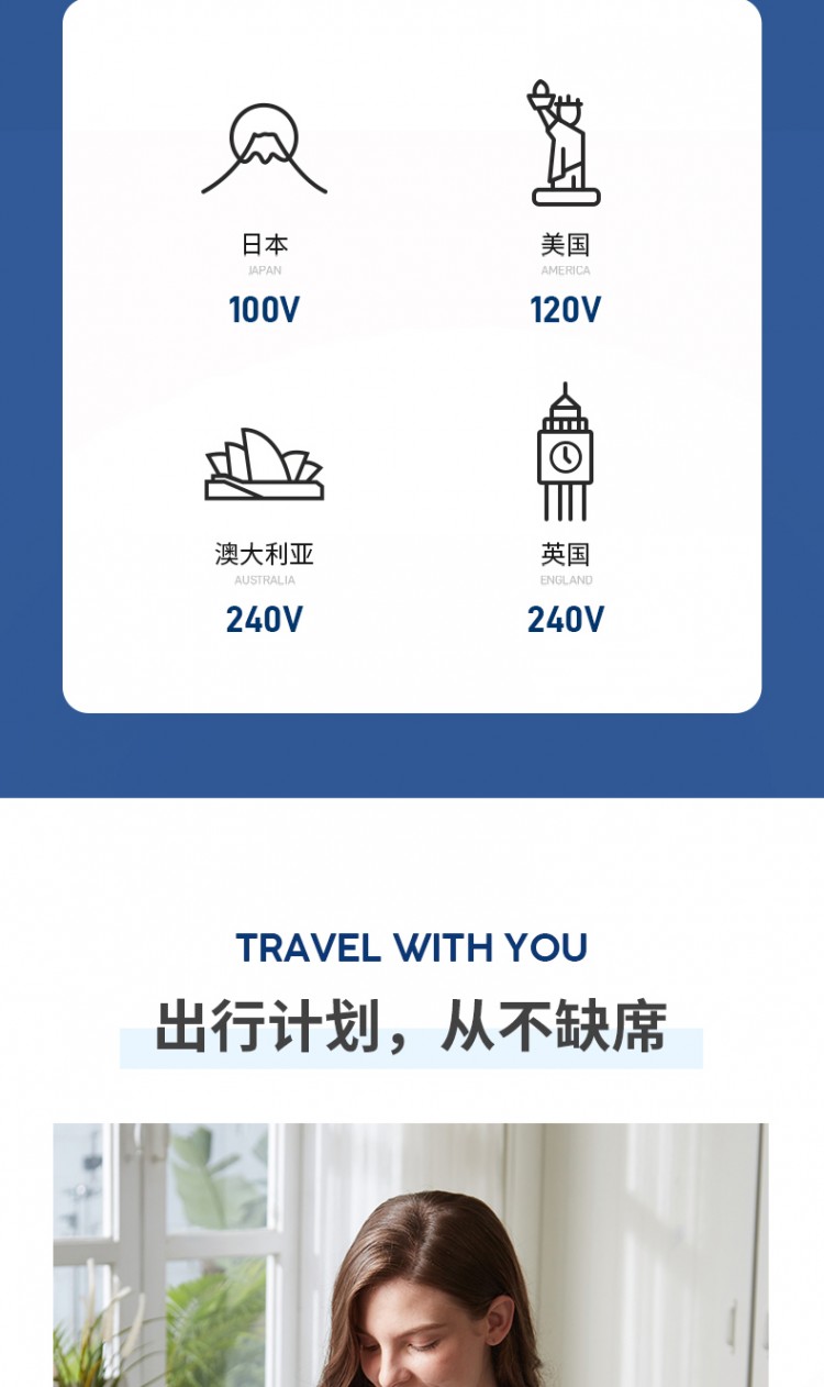 6.全球通用。自適應(yīng)變壓技術(shù),(100~240V電壓)。