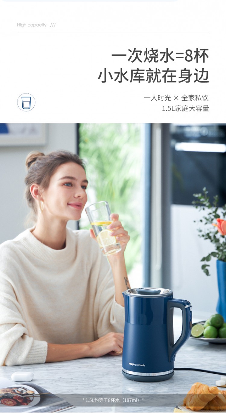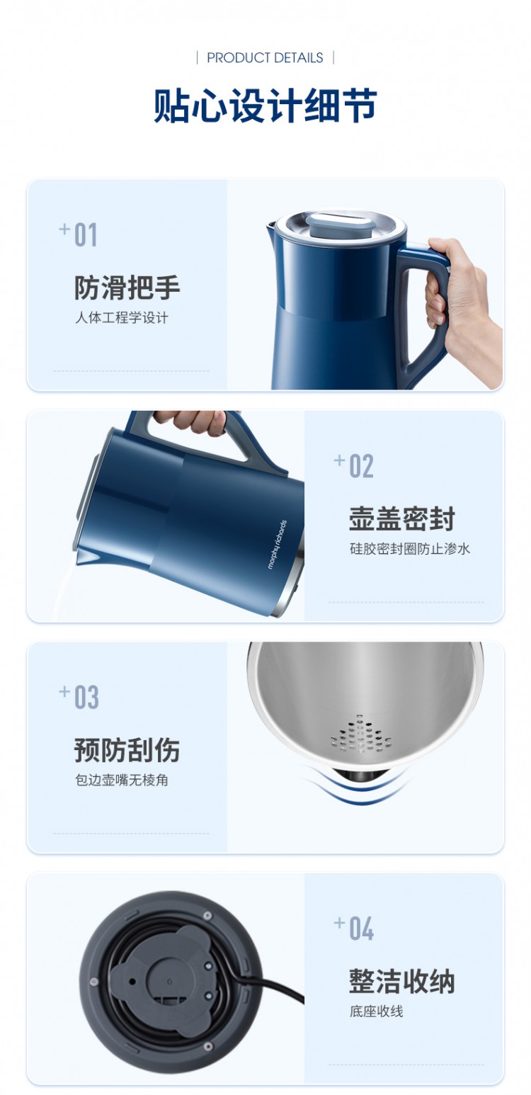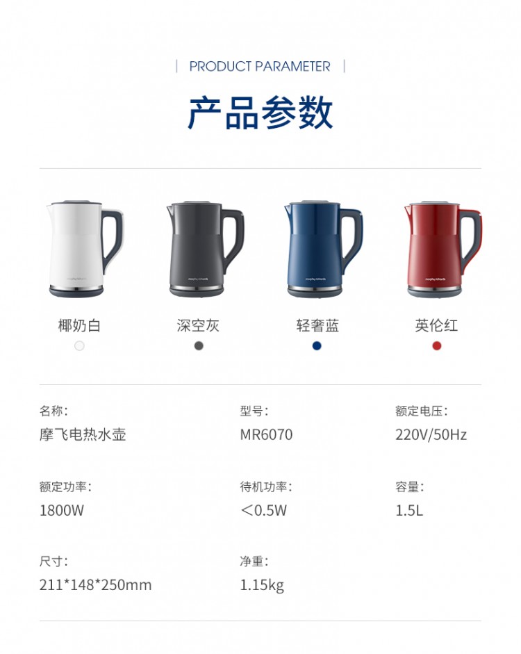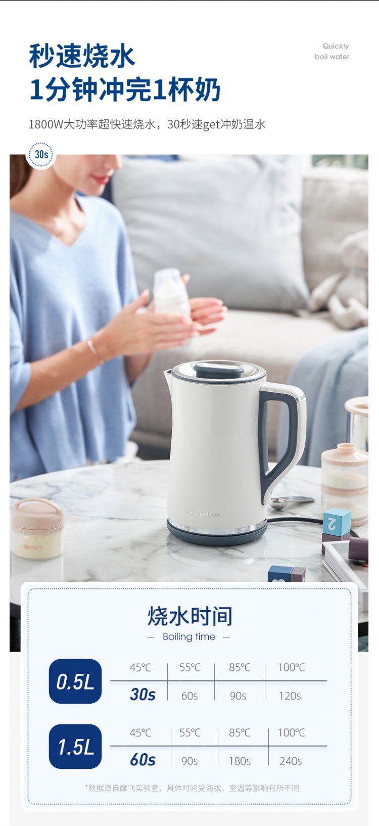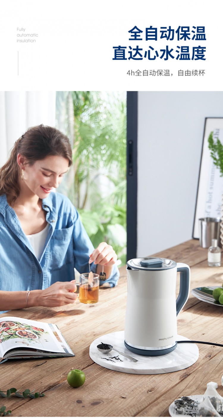 摩飛電熱水壺 摩飛MR6070電燒水壺 304不銹鋼水壺 智能保溫防燙1.5升燒水壺