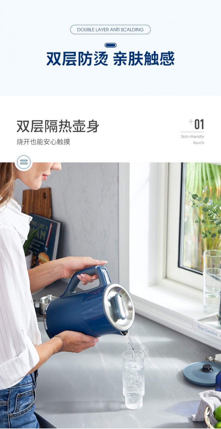 4.雙層壺身親膚防燙。雙層真空隔熱,安全倒水不燙手。