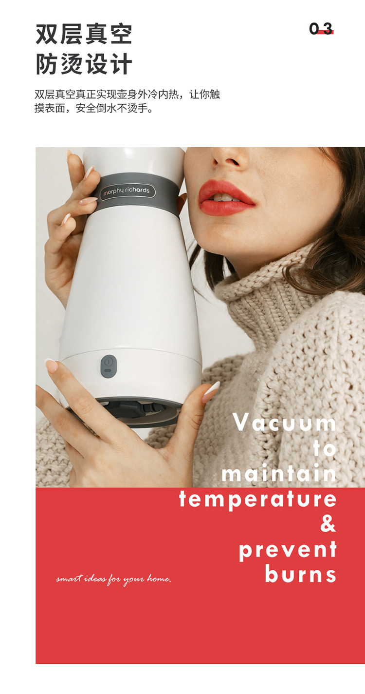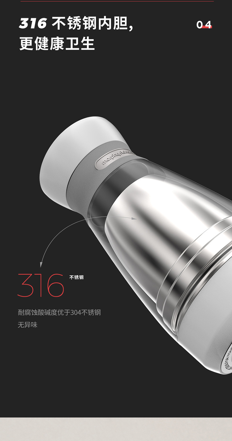 3.冷觸感防燙。雙層真空隔熱,親膚手感,安全倒水
