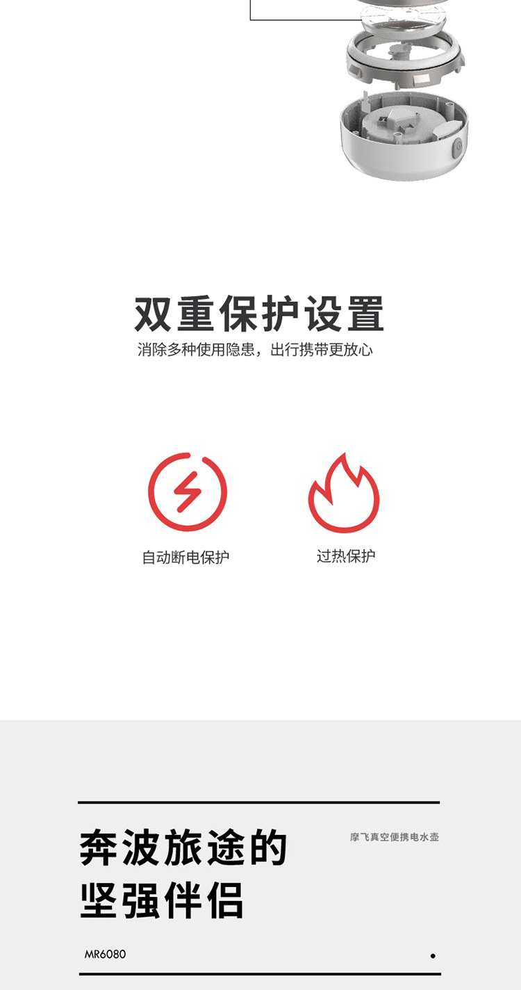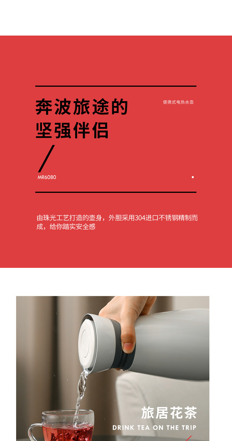 摩飛電器電熱水壺 摩飛MR6080旅行出差便攜式燒水壺316雙層不銹鋼水壺