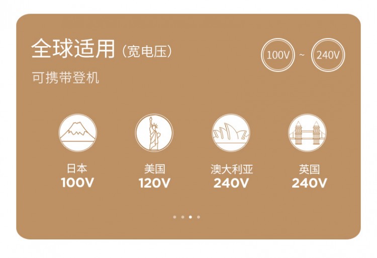 4.全球通用。自適應(yīng)變壓技術(shù),(100~240V電壓)。