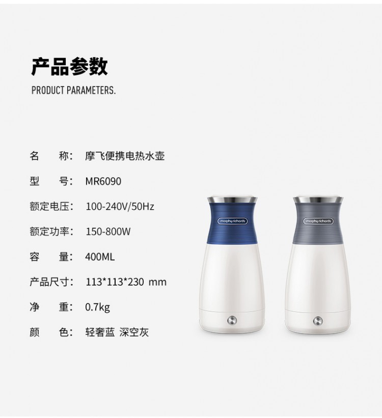 摩飛便攜式電熱水壺 摩飛MR6090燒水壺 辦公室出差戶外旅行電熱水壺