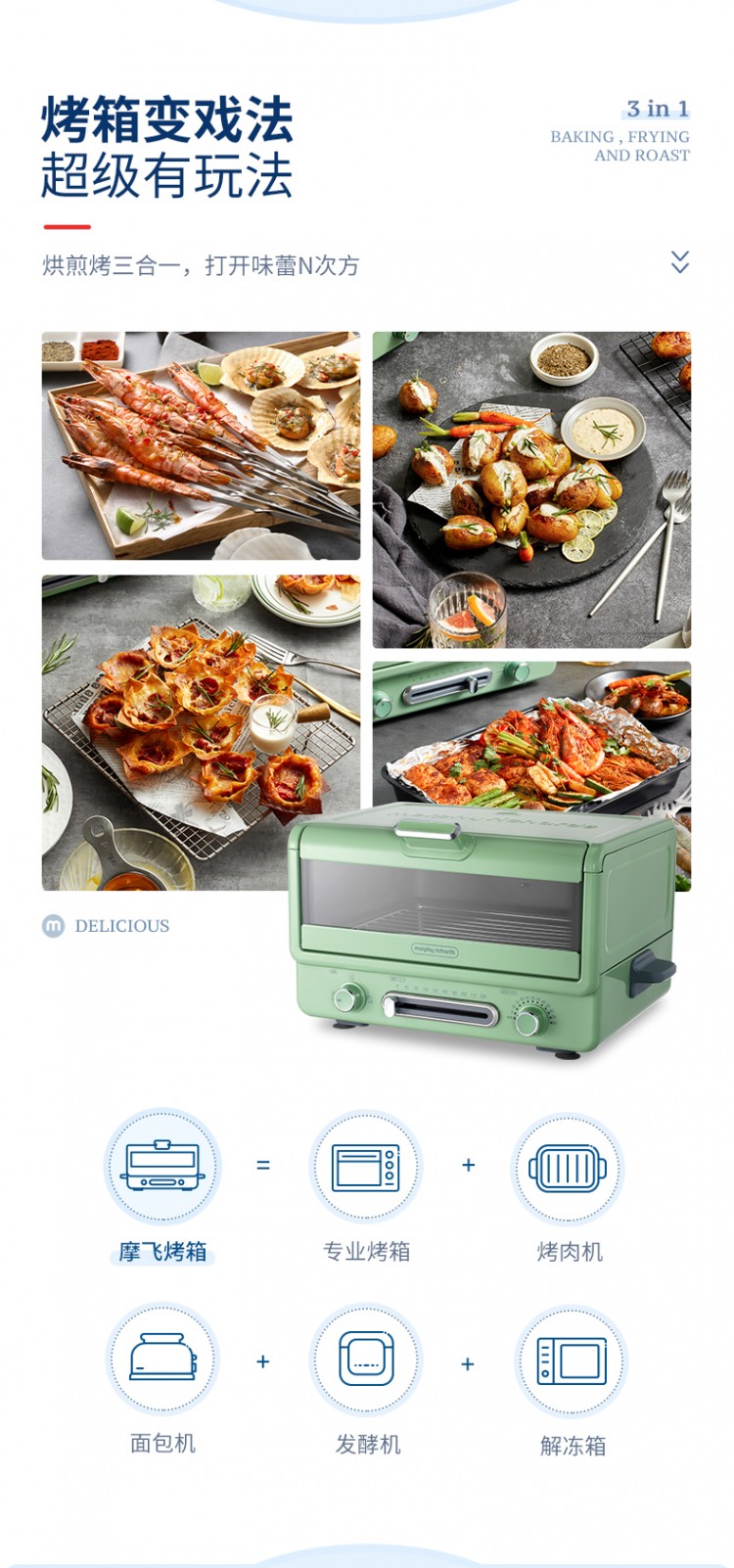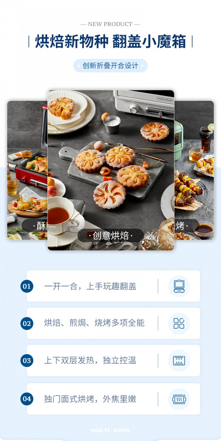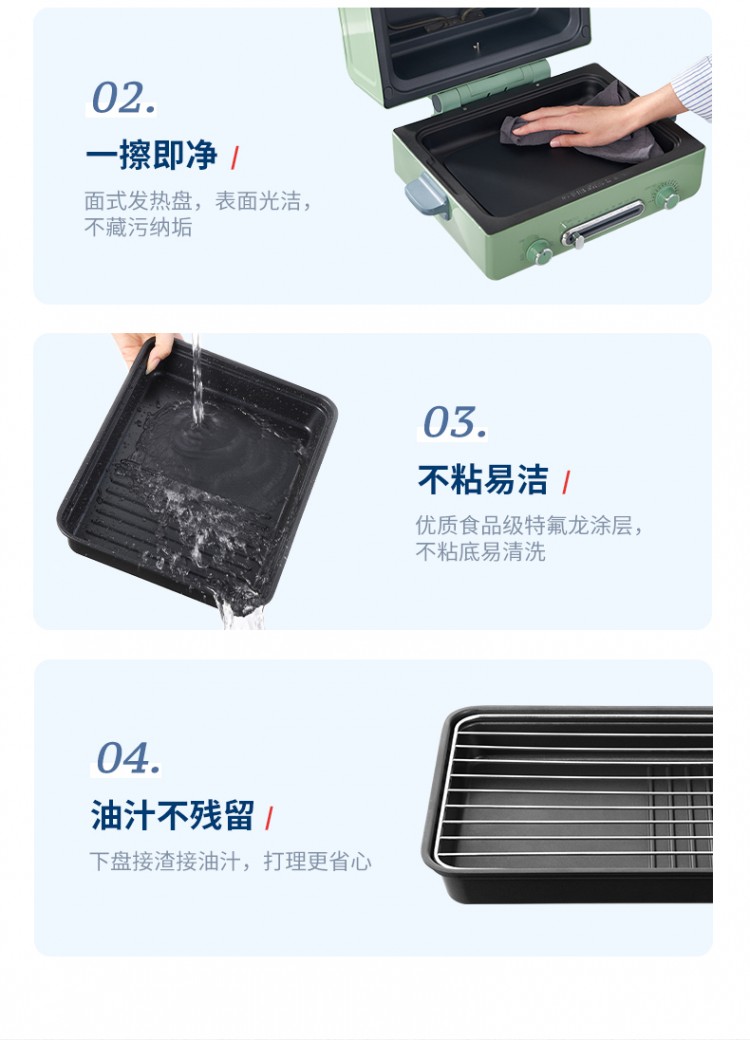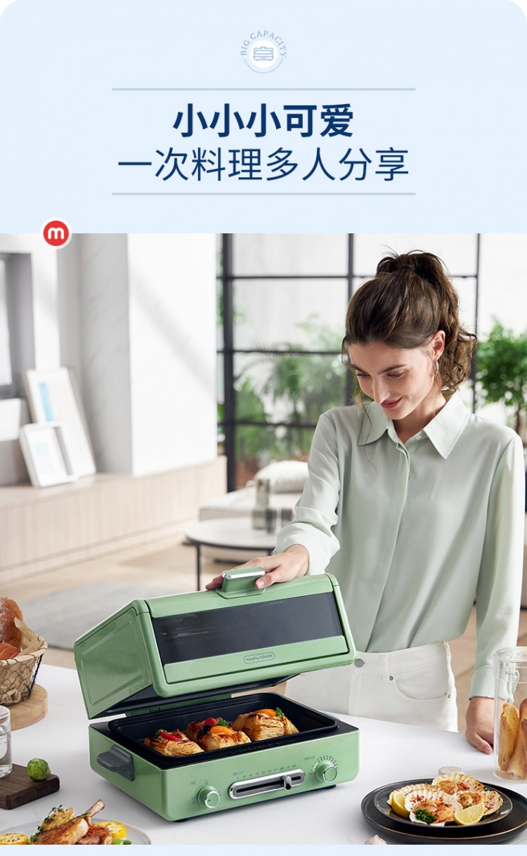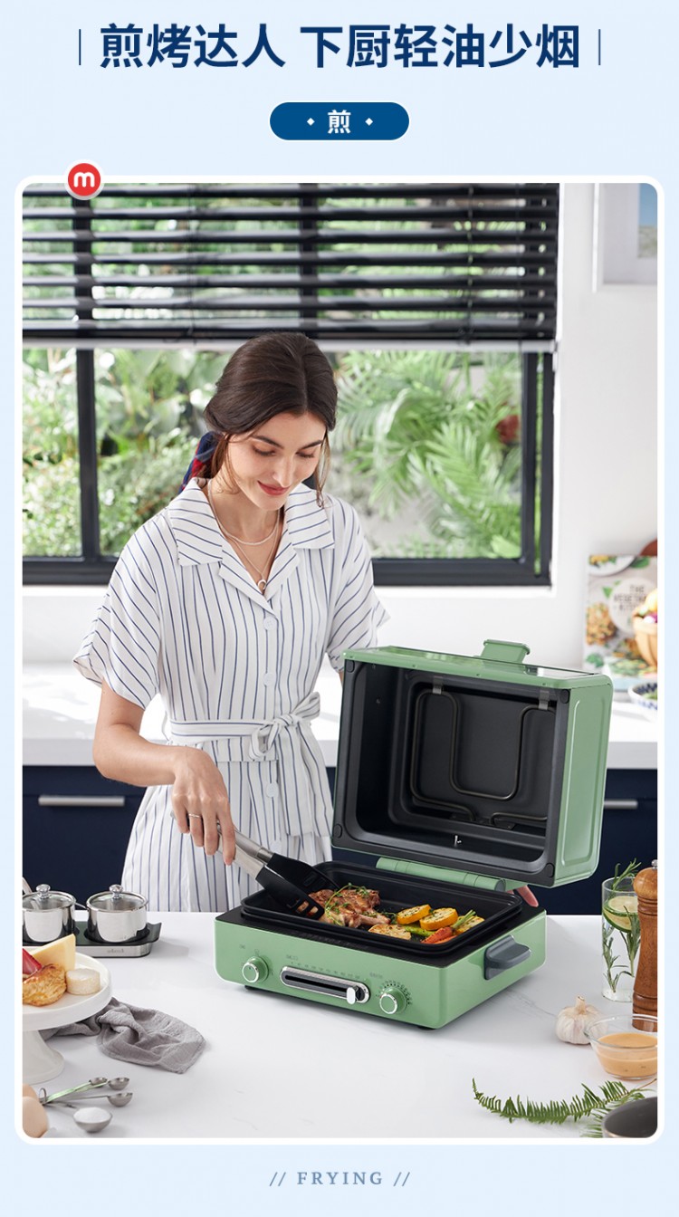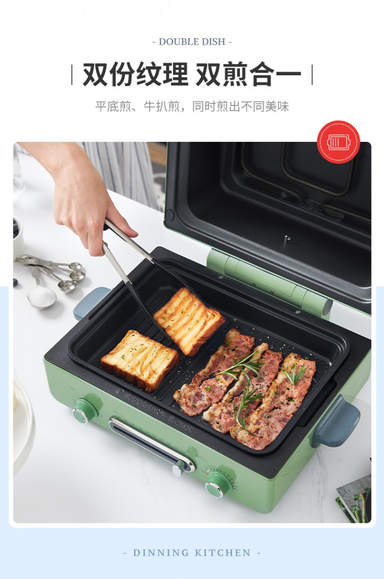 2.多項(xiàng)全能。烘焙、燒烤、煎焗多合一,打開(kāi)味蕾N次方。