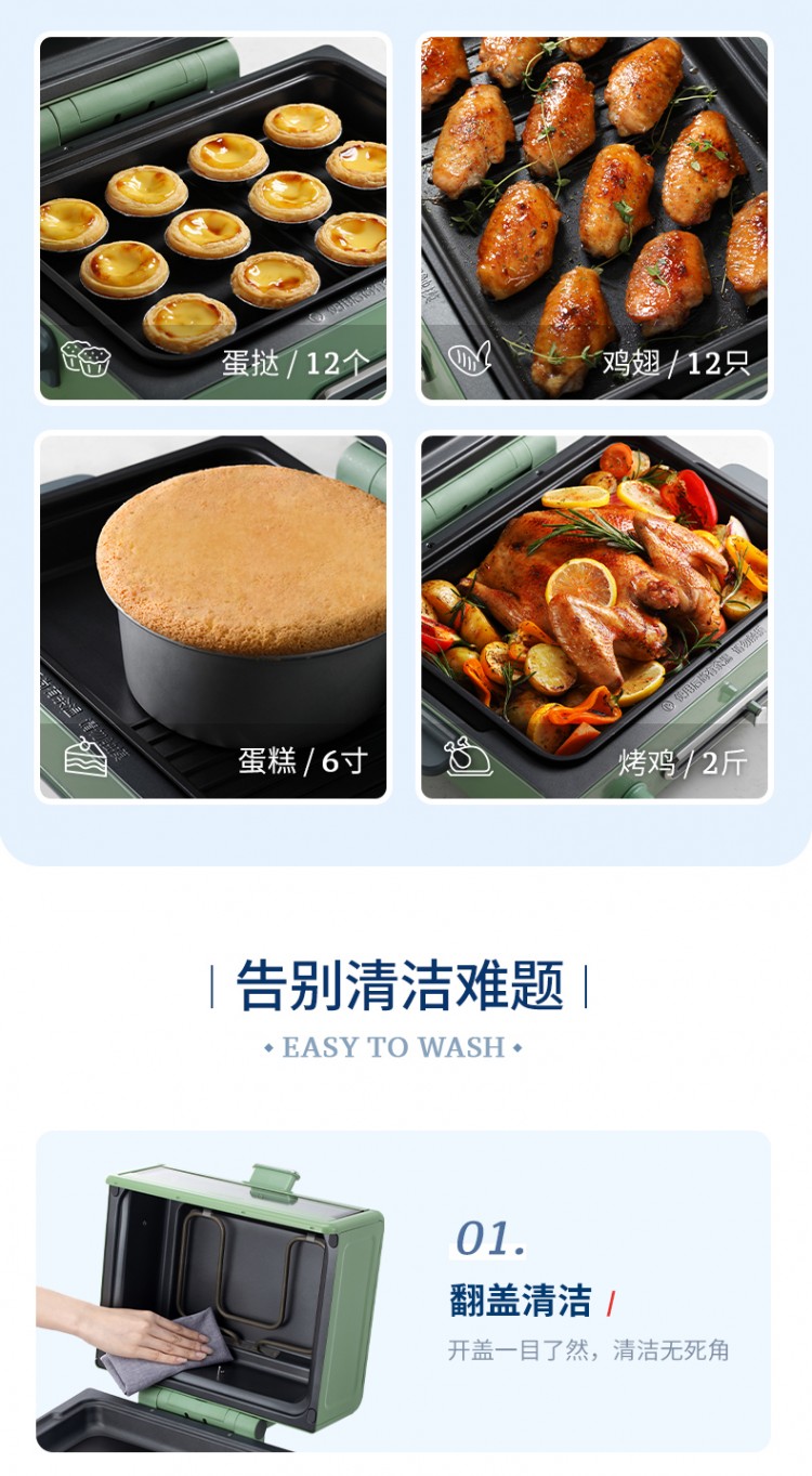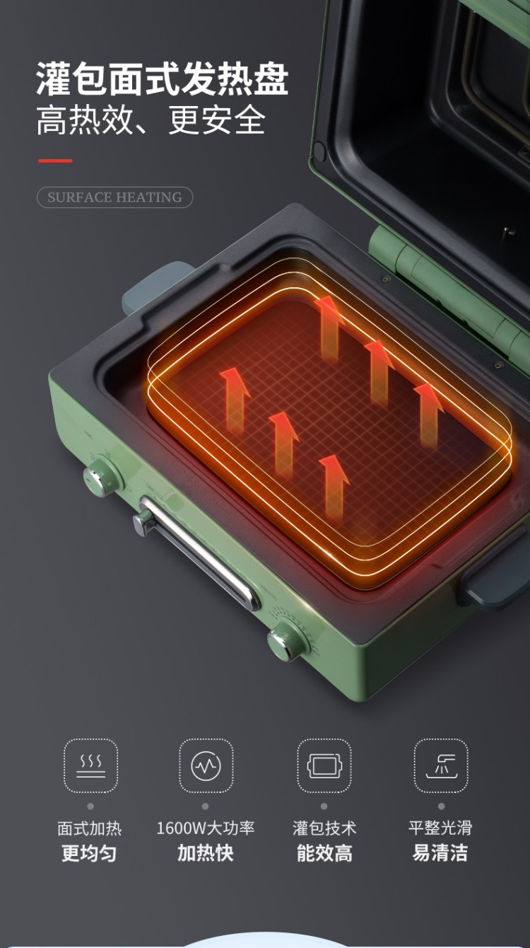 4.面式烘烤。加熱更均勻、清洗更方便。