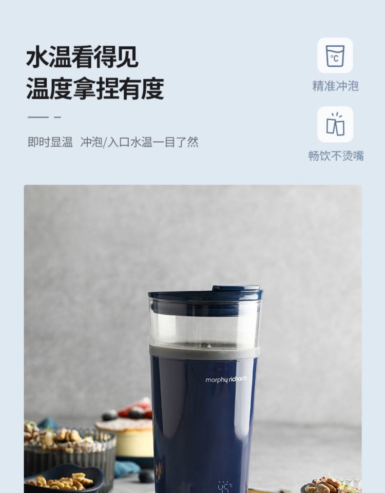 2.即時(shí)顯溫。一觸即顯杯內(nèi)溫度,精準(zhǔn)沖泡,暢飲不燙嘴。