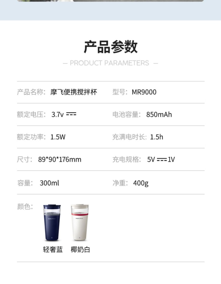 摩飛便攜式攪拌杯 摩飛MR9000奶昔沖奶果汁咖啡杯 自動(dòng)無線攪拌杯