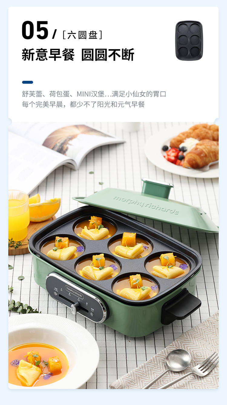 詳細(xì)信息 1.美味N次方。六款配件煮出無(wú)限種美味,拎起即可換盤,秒變大廚。 2.面式發(fā)熱盤。1400w大功率熱盤,加熱均勻,平滑面板,方便清潔。 3.全能料理。煎、炸、燉、蒸、燜樣樣精通,中西餐、下午茶……隨便解鎖美味。 4.收納有方。可拆卸電源線,方便收納。 5.輕油少煙。選用食品級(jí)防粘涂層,有效控制油煙,讓餐桌變廚房。 6.輕松上手。中控臺(tái)指引清晰,無(wú)使用門檻,輕松操控。 7.配件:深鍋、蒸格、牛扒盤、平烤盤、丸子盤、六圓盤。 ![]() ![]() ![]() ![]() ![]() ![]() ![]() ![]() ![]() ![]() ![]() ![]() ![]() ![]() ![]() ![]() ![]() ![]() ![]() ![]() ![]() |