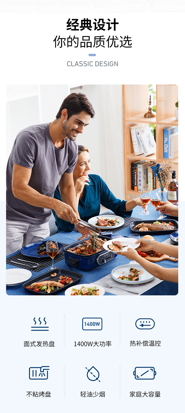 5.輕油少煙。選用食品級(jí)防粘涂層,有效控制油煙,讓餐桌變廚房。