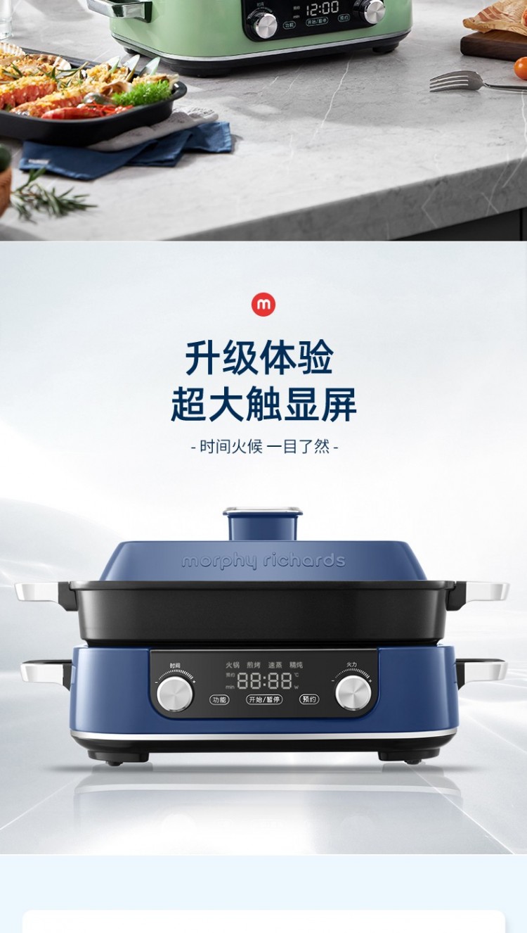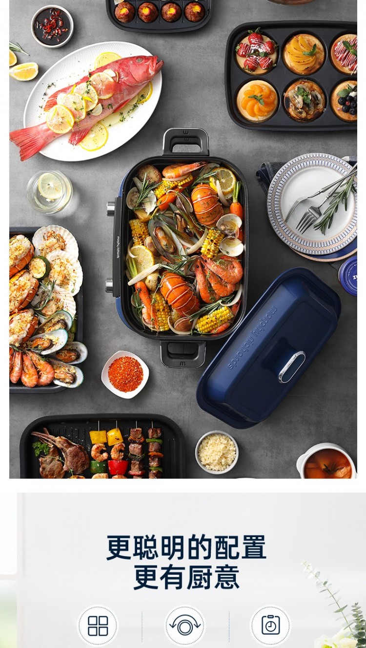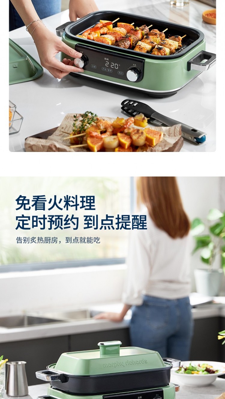 摩飛二代多功能料理鍋 摩飛MR9099網(wǎng)紅鍋 家用蒸煮炒煎電烤鍋 MR9088升級款大屏觸控火鍋烤肉鍋