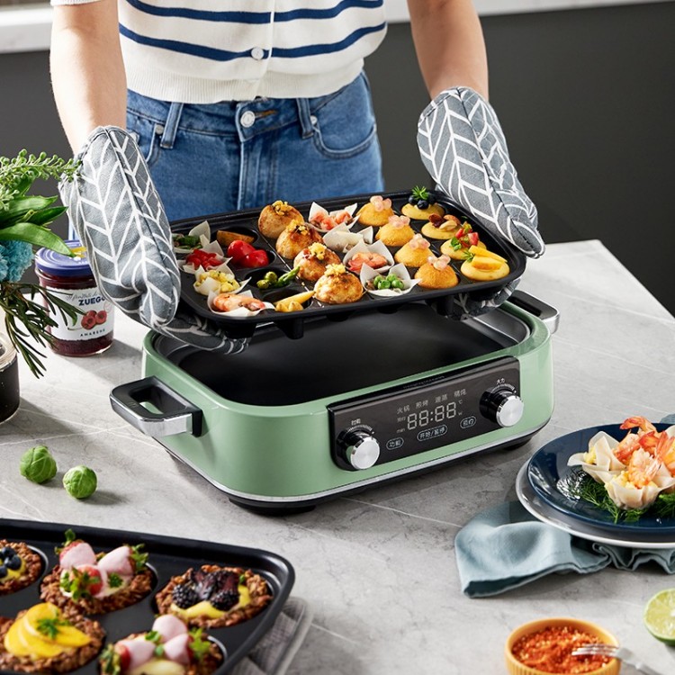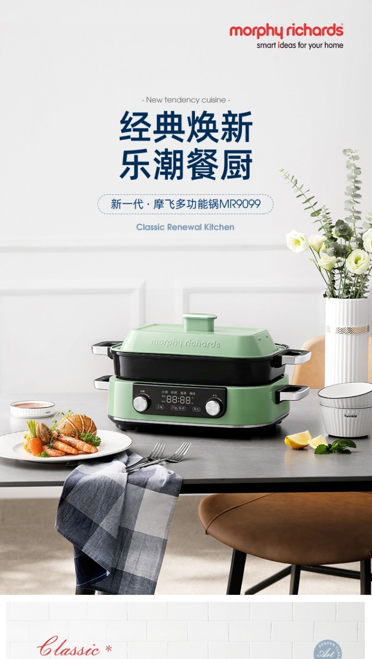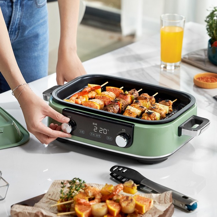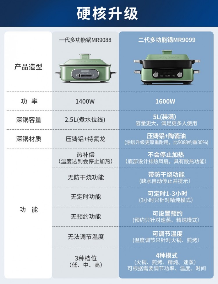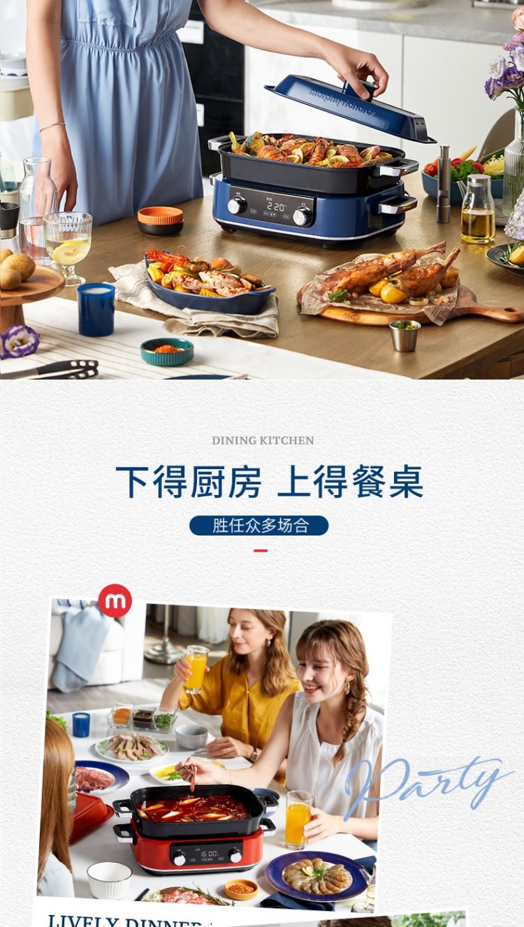 摩飛二代多功能料理鍋 摩飛MR9099網(wǎng)紅鍋 家用蒸煮炒煎電烤鍋 MR9088升級款大屏觸控火鍋烤肉鍋