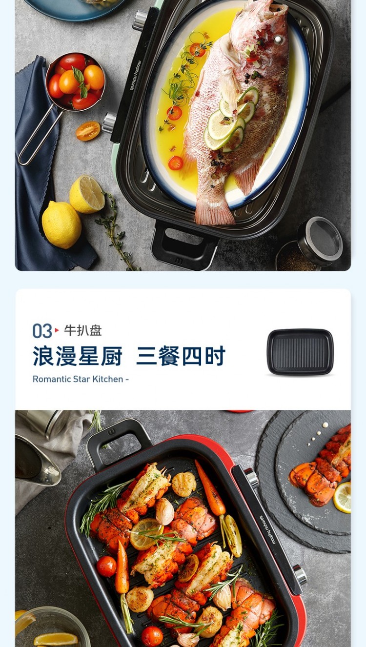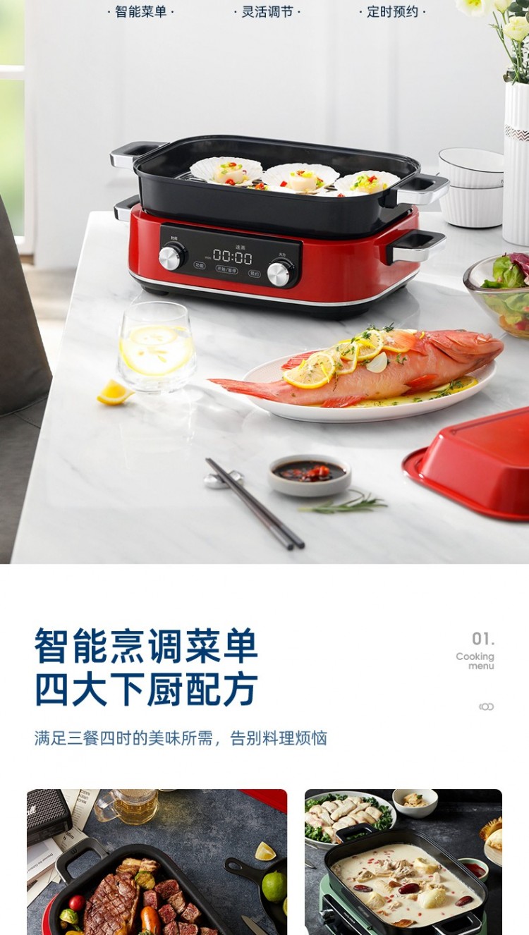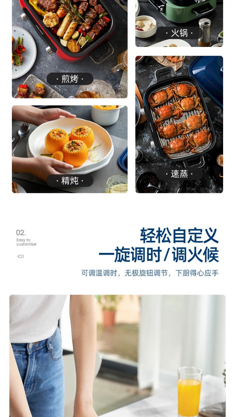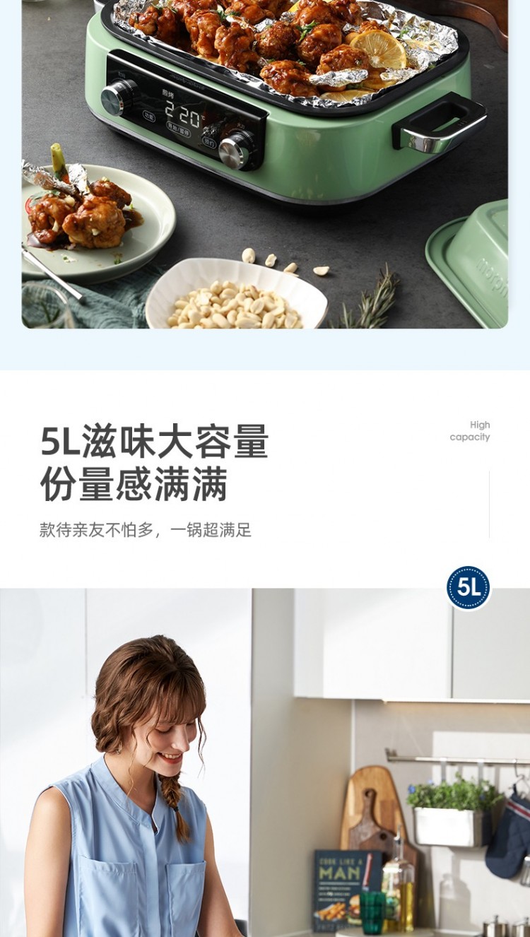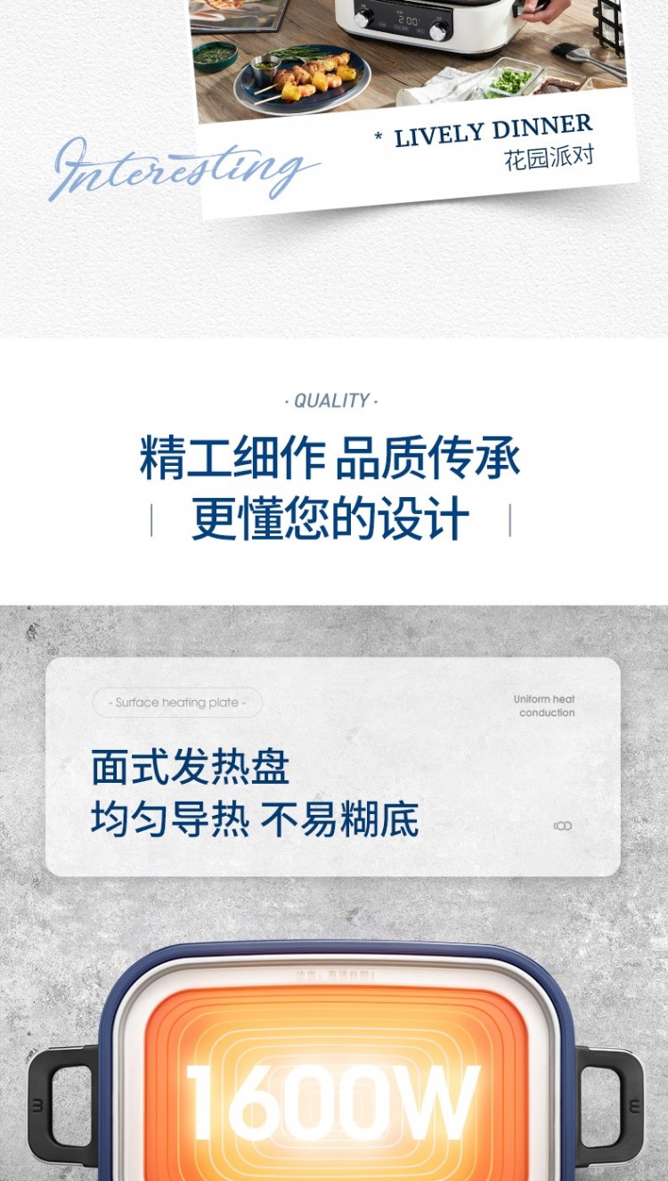 5.1600W更高效。選用食品級防粘涂層,有效控制油煙,讓餐桌變廚房。