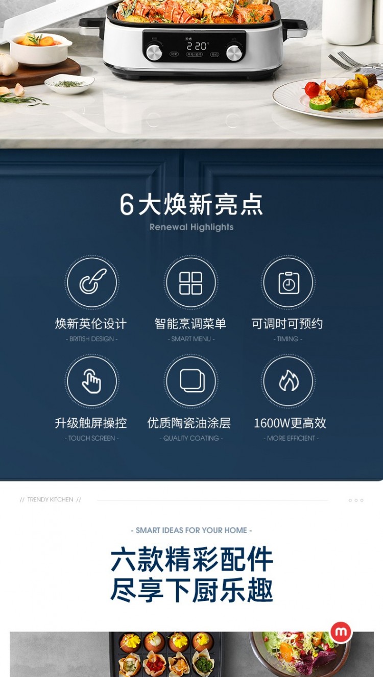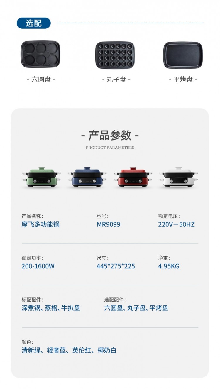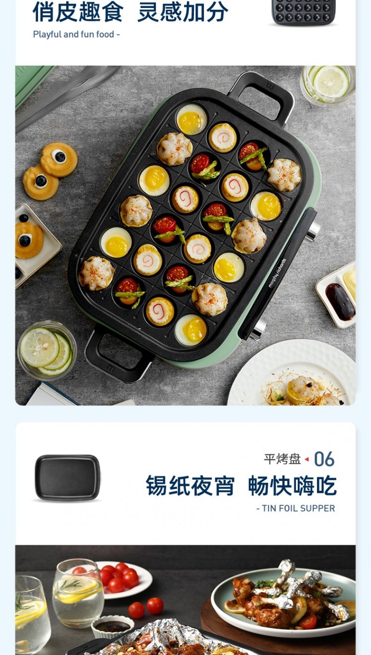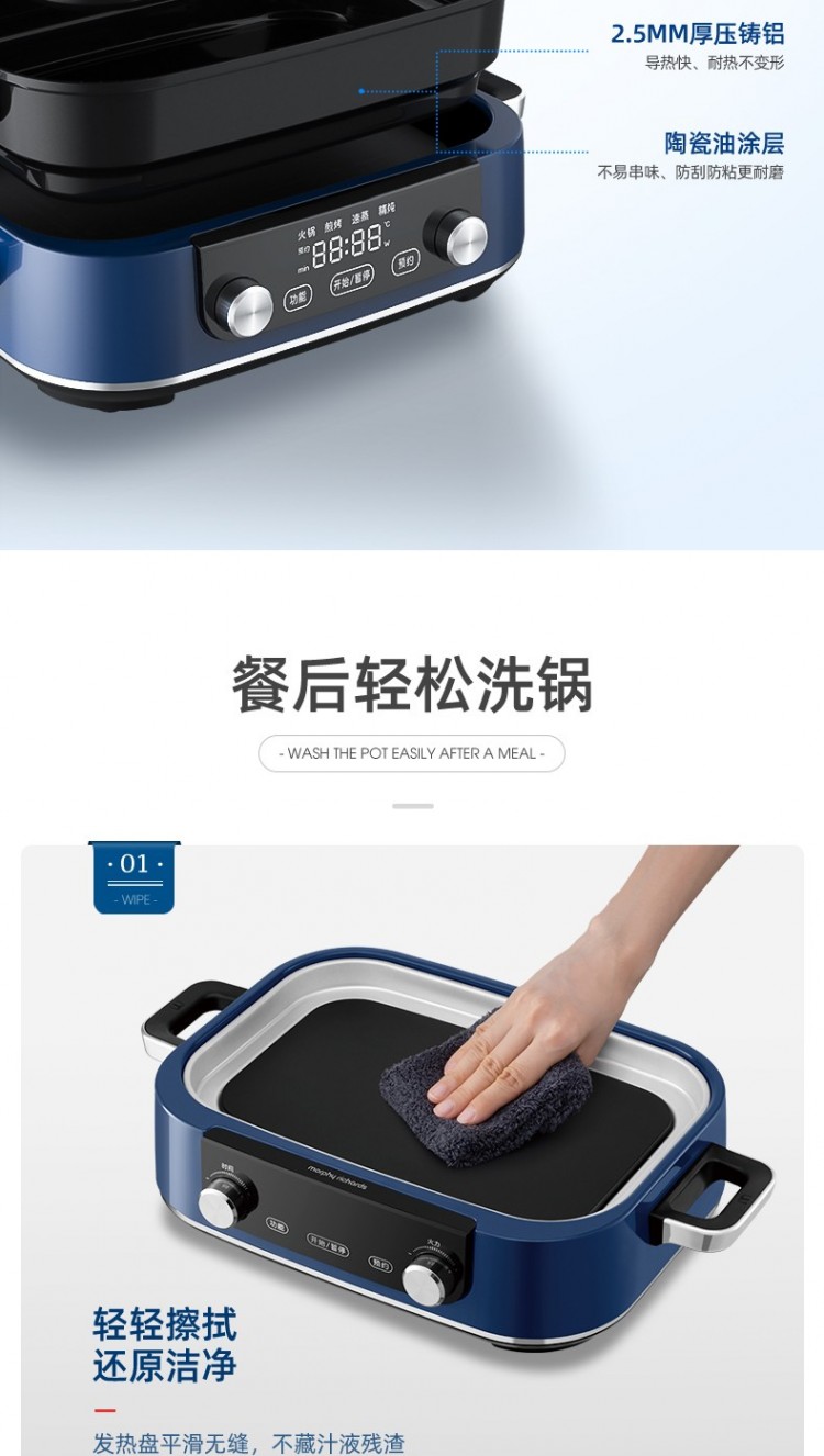 5.1600W更高效。選用食品級防粘涂層,有效控制油煙,讓餐桌變廚房。