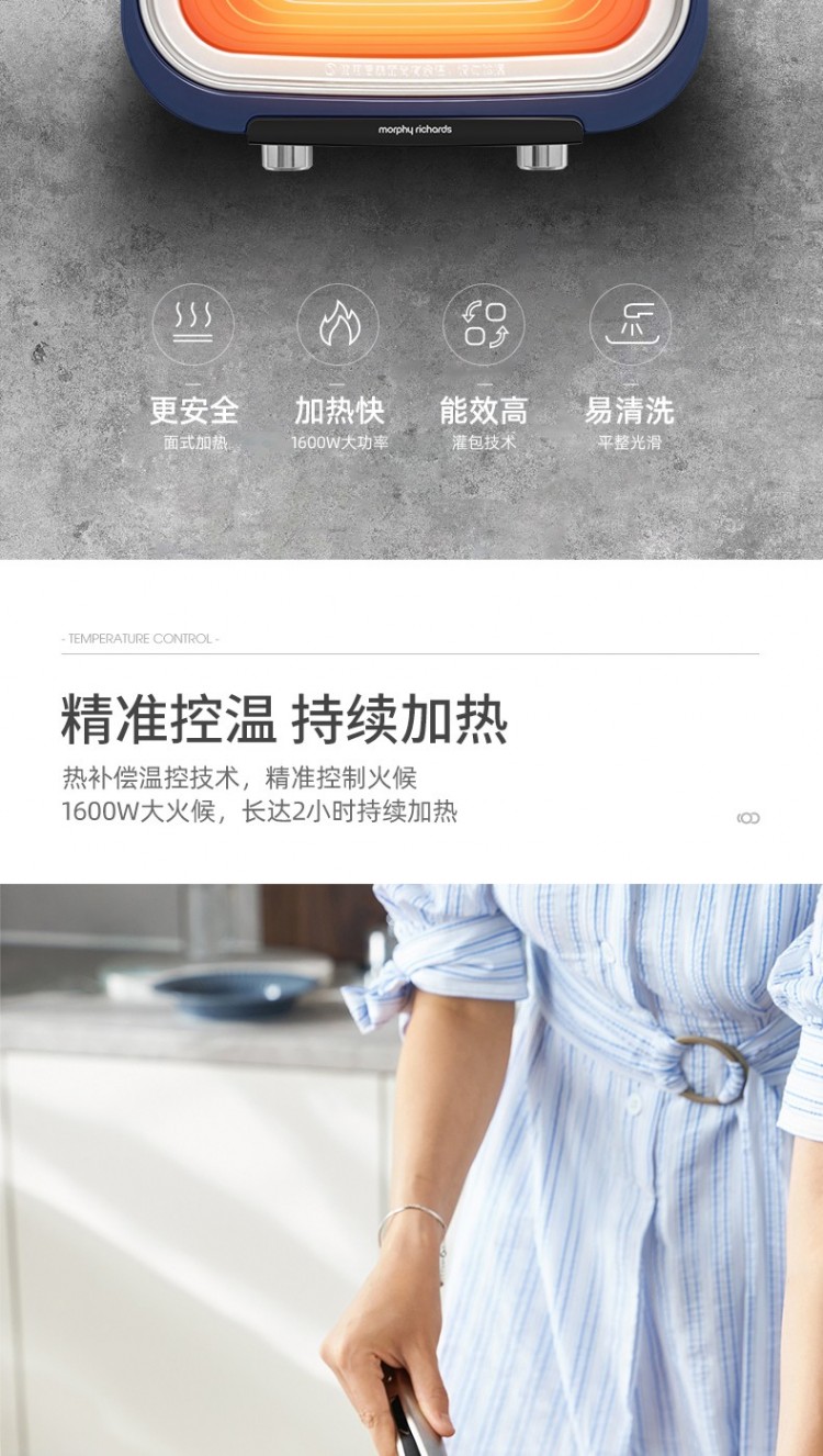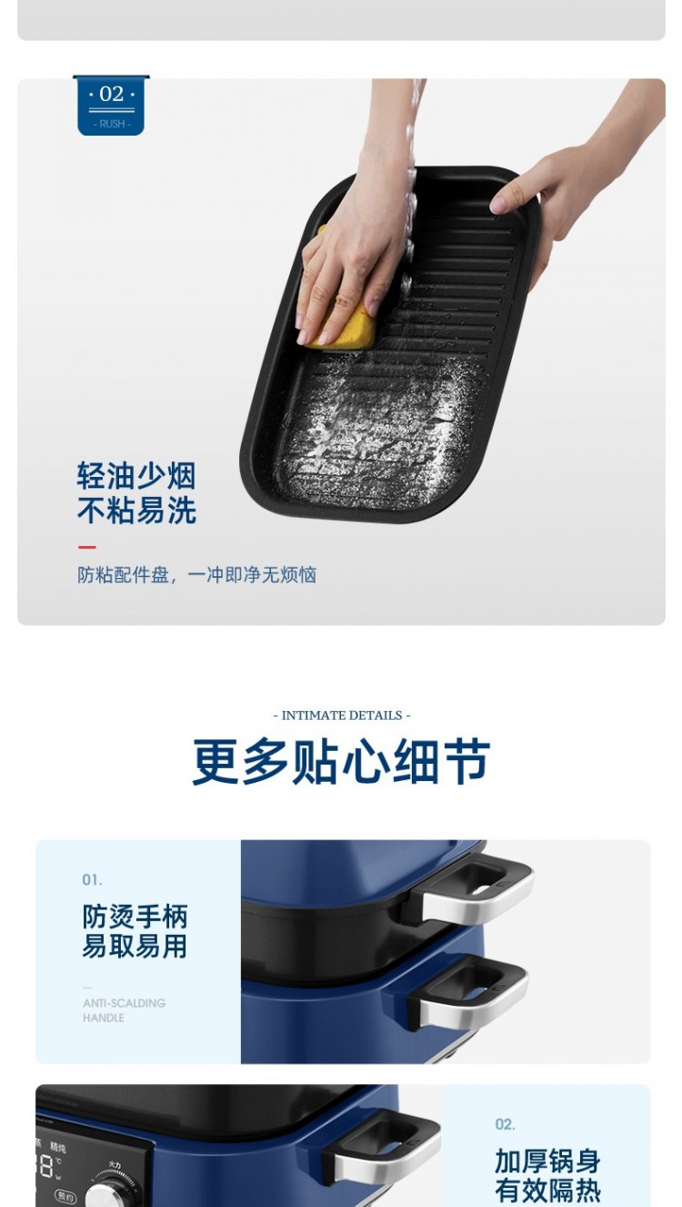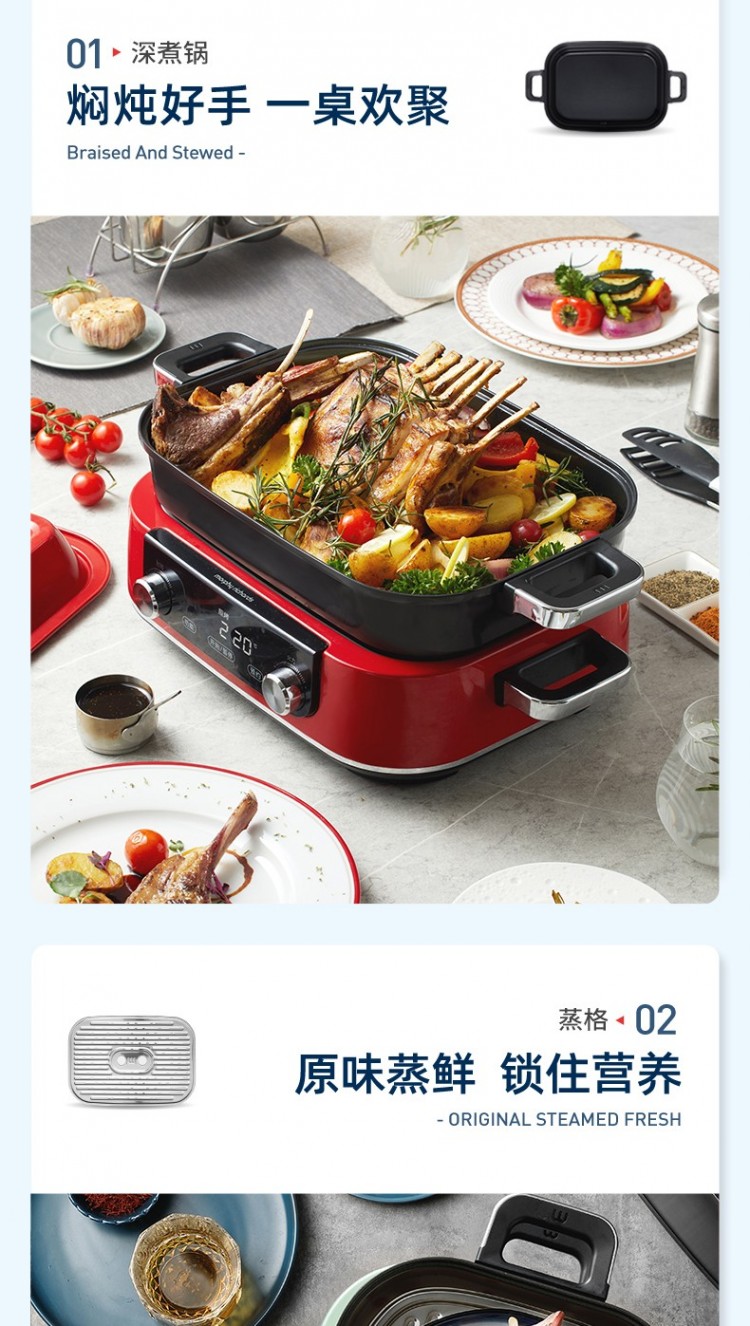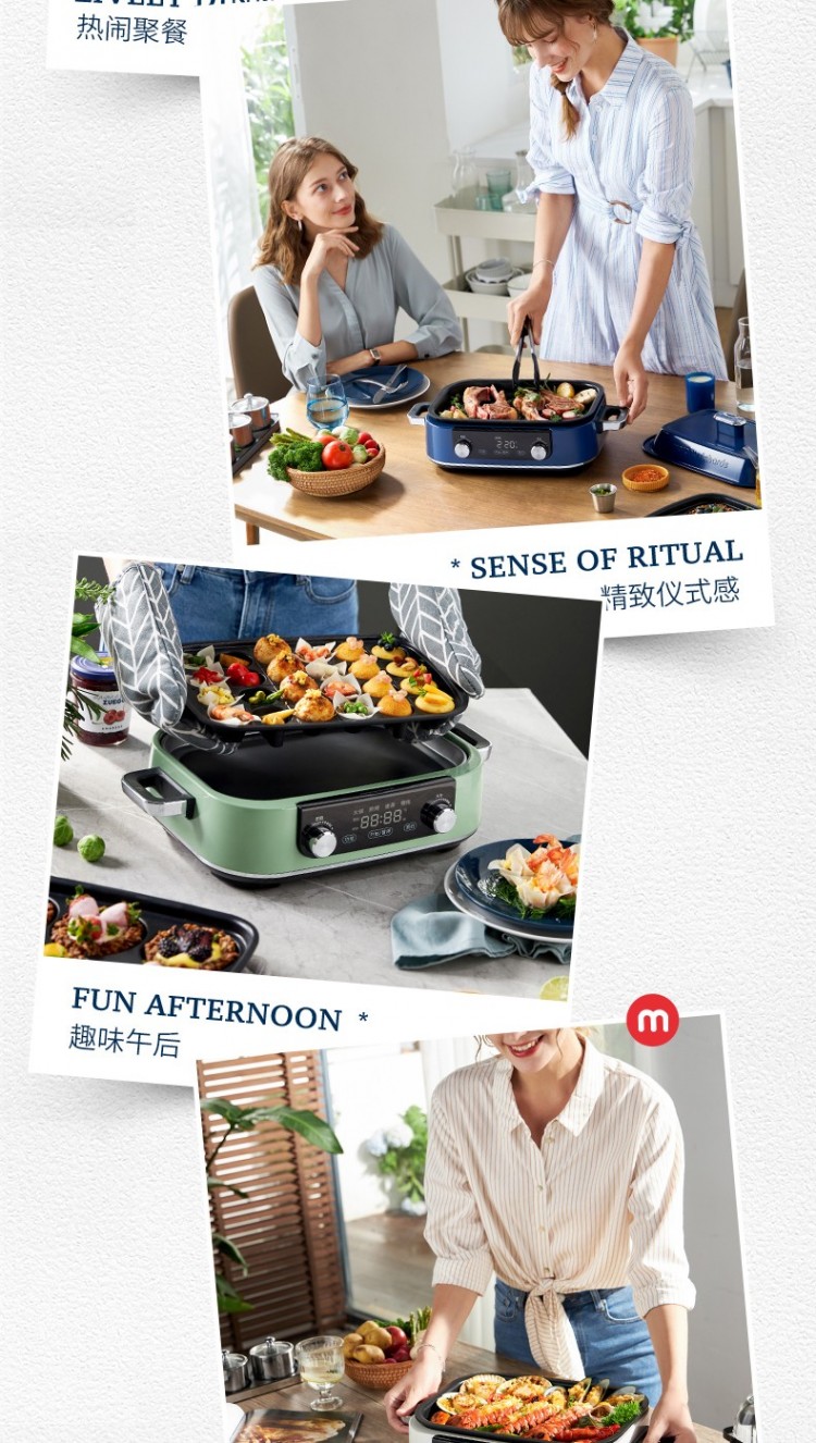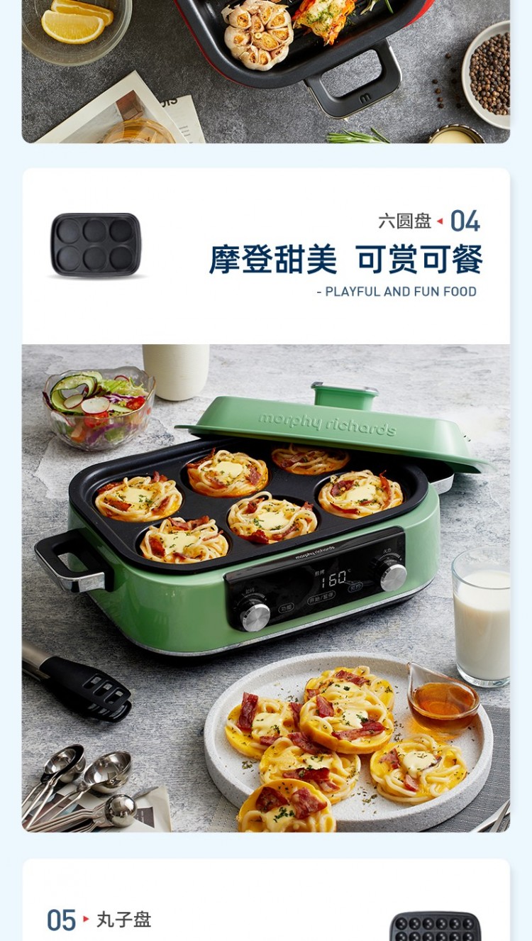 5.1600W更高效。選用食品級防粘涂層,有效控制油煙,讓餐桌變廚房。