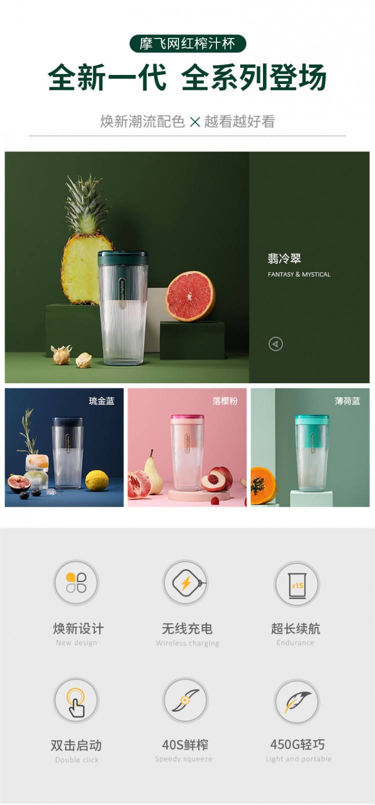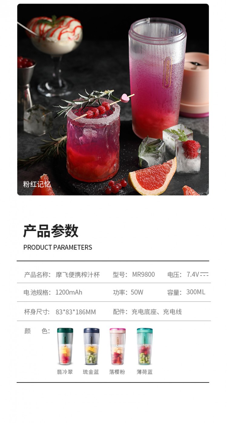 摩飛便攜式榨汁杯 摩飛MR9800網(wǎng)紅無線充電果汁杯 迷你隨行鮮榨果汁杯