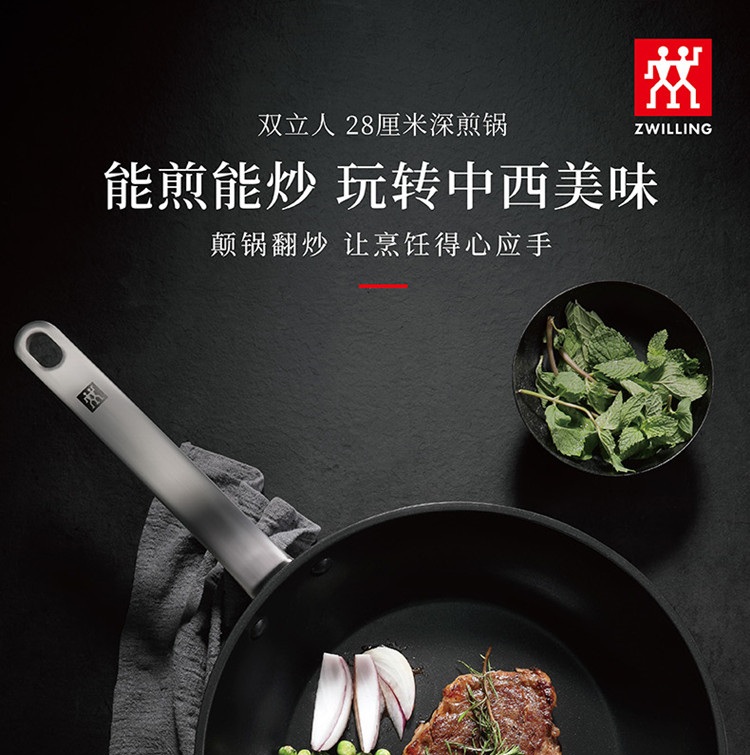 雙立人深煎鍋ZW-EY003 雙立人不粘鍋平底鍋煎牛排鍋煎雞蛋炒菜鍋 電磁爐燃氣爐通用鍋全國代理商