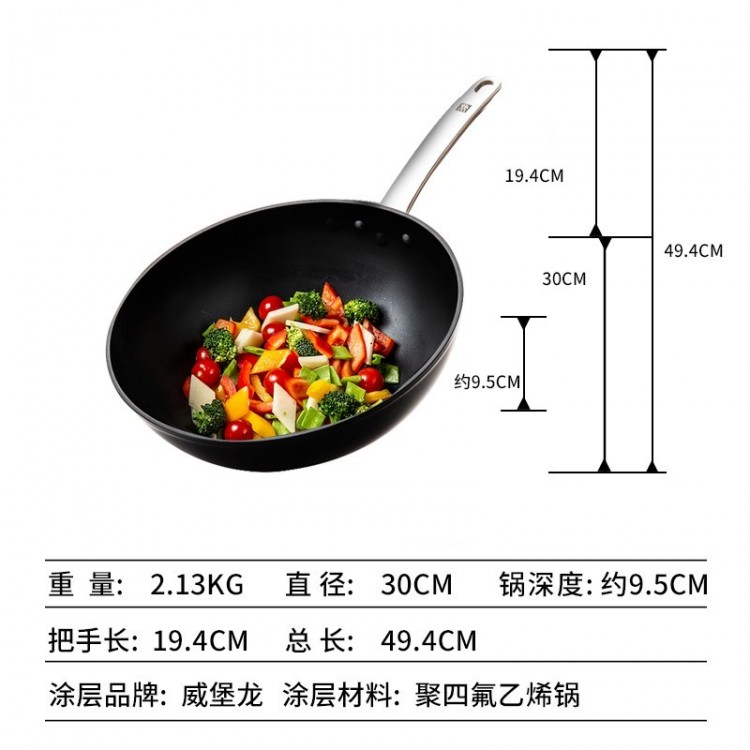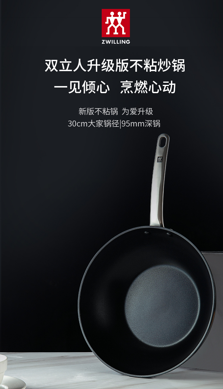 雙立人炒鍋 ZW-EY005德國雙立人中式炒鍋深炒鍋四川成都批發(fā) 30cm炒菜鍋不粘鍋適用電磁爐燃?xì)鉅t