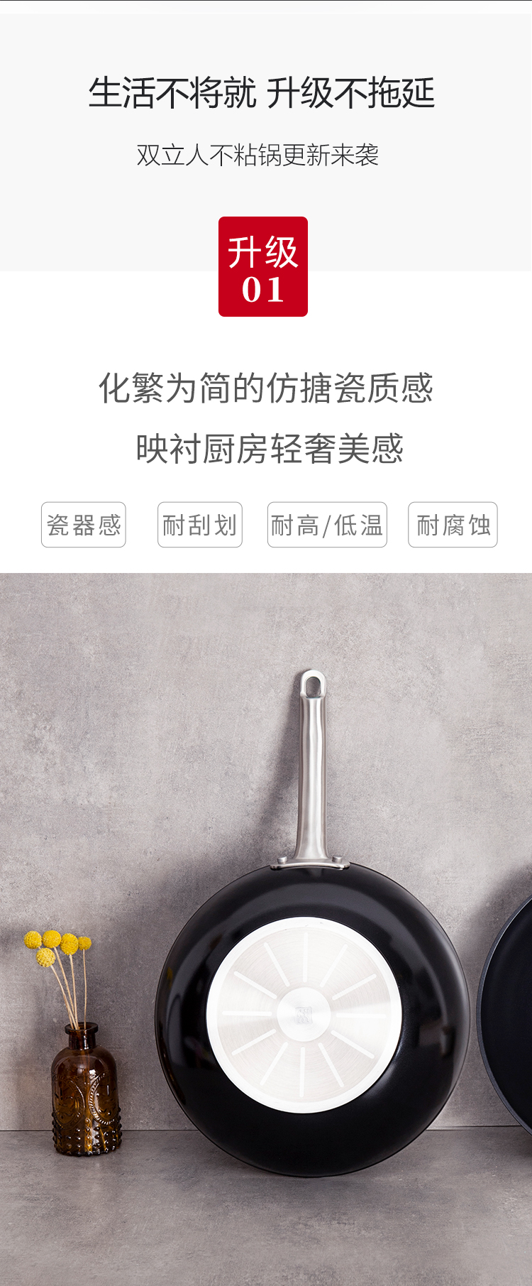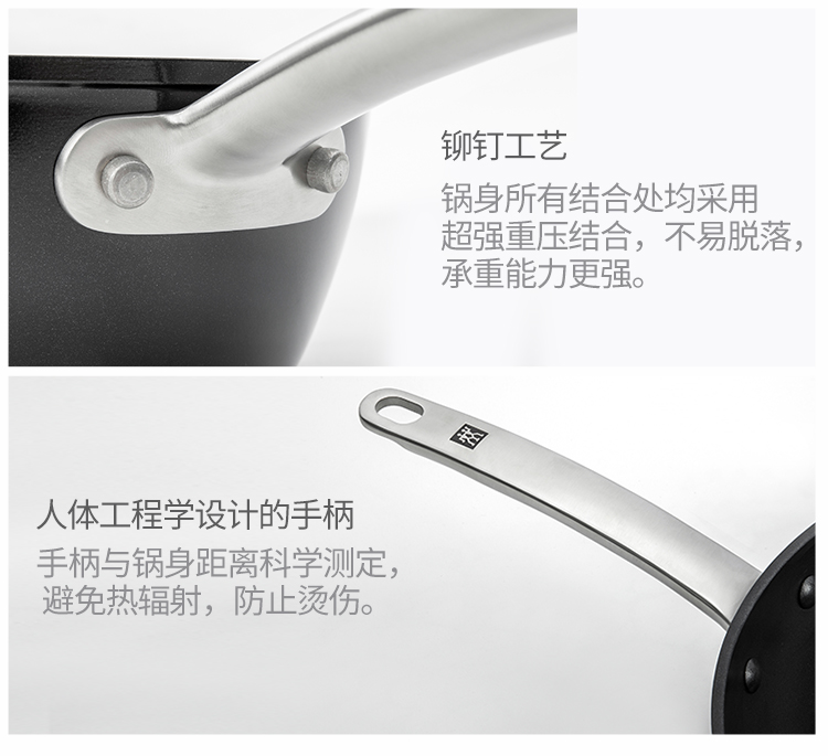 3. 輕松打理,盡顯廚藝:雙立人平底不粘煎鍋內(nèi)涂層威堡龍C3+不粘涂層,油污不易附著;外涂層威堡龍高溫漆,耐磨不易刮花。