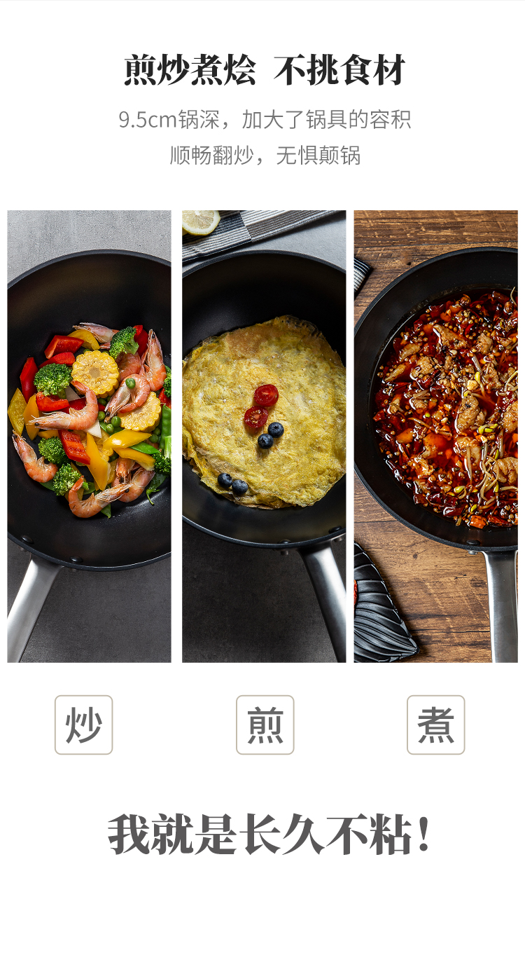 2. 不挑爐灶,全系適配:一體式不銹鋼平鍋底,滿足多變場景;兼容多種熱源,自由切換。