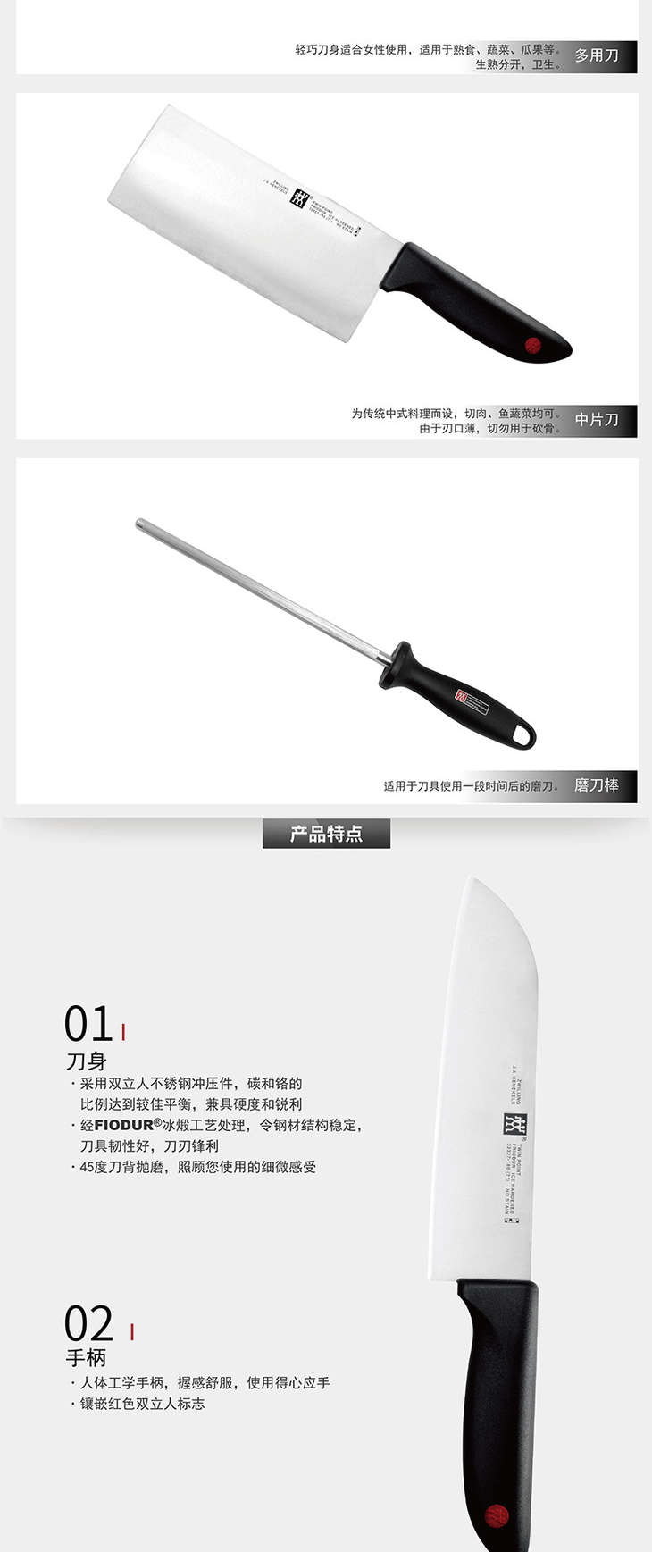 2.多用刀:輕巧刀身特別適合女性使用, 適用于熟食、蔬菜、瓜果等生熟分開(kāi),衛(wèi)生。