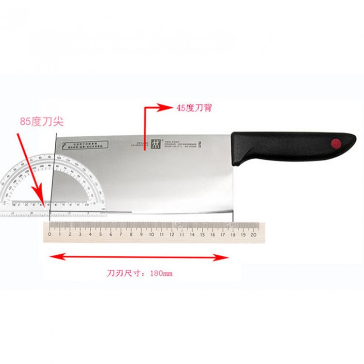 1.中片刀:適用于多種肉類、蔬菜的切配,由于刃口較薄,請勿用于砍骨。