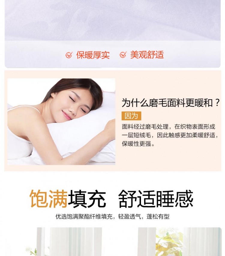2.潮濕的環(huán)境容易滋生螨蟲,采用纖維填充,有效防止螨蟲的滋生,保暖耐磨,防止熱量散發(fā)。
