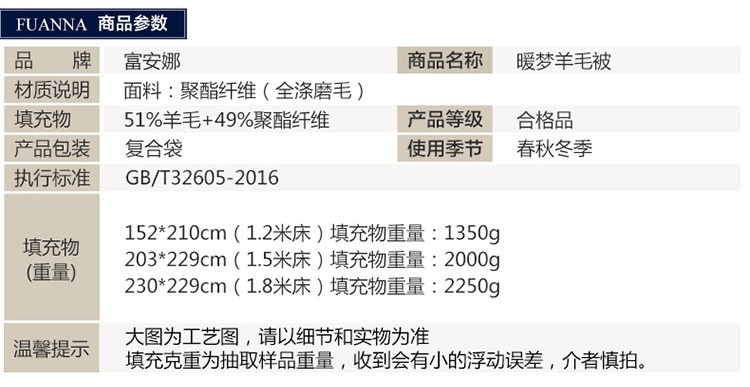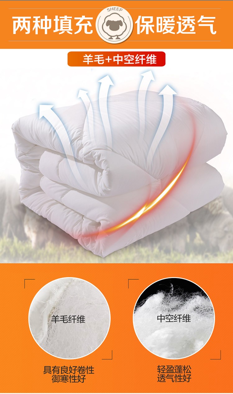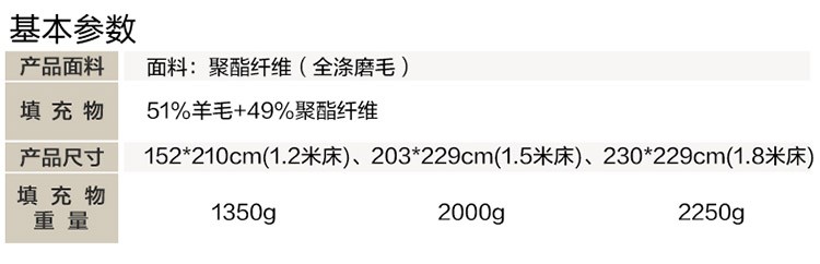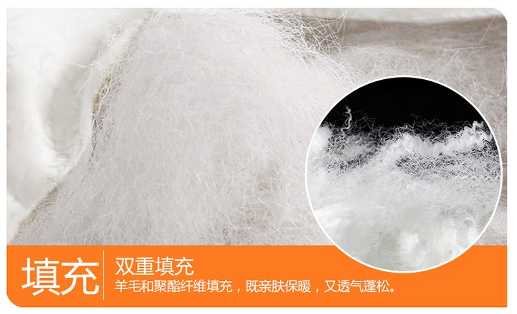 2.51%澳洲進(jìn)口羊毛填充 49%透氣中空纖維 合理配比 雙料填充 品質(zhì)保障。