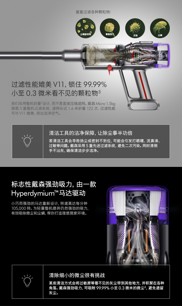 戴森無繩吸塵器 戴森Micro 1.5KG 超輕量手持無線吸塵器 適合家庭辦公室寵物除螨的吸塵器