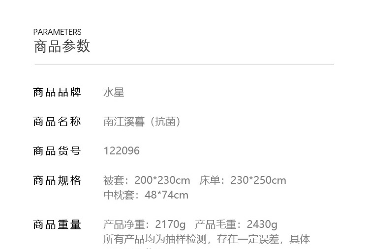 規(guī)格:被套:200*230cm;床單:230*250cm;枕套:48*74cm*2