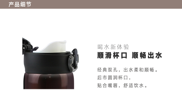 詳細信息 產(chǎn)品介紹: 1、彈壓式開關附安全扣環(huán)。 2、矽膠套,可脫卸沖洗,不漏水,不藏污垢。 3、4cm寬的口徑,易將冰塊放入。 4、色彩高雅,老少皆宜,便于攜帶外出。 5、出水孔及空氣對流孔采開放式設計,保溫好,經(jīng)3段式爐抽真空制程,達到高真空境界。 6、保溫效果:6小時保溫61度以上,保冷效力:6小時保冷11度以下。 ![]() ![]() ![]() ![]() ![]() ![]() ![]() ![]() ![]() ![]() ![]() ![]() ![]() ![]() |