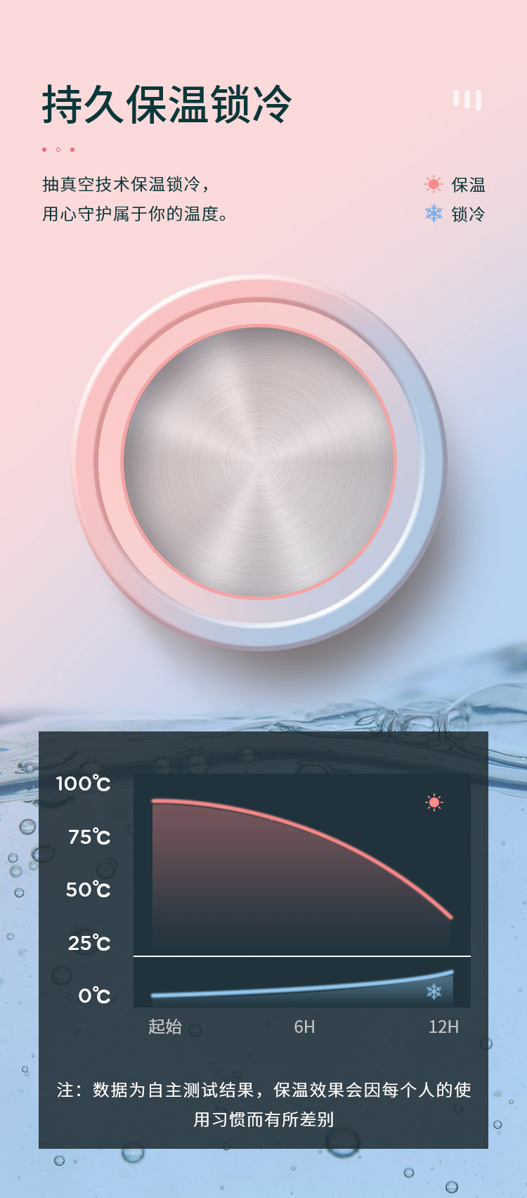 1、高真空技術,保溫保冰效果很好,6小時保溫在 63度以上;保冷6小時11度以下。