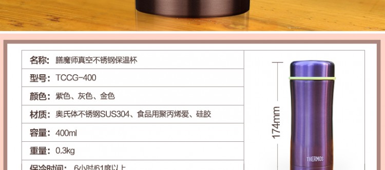 膳魔師 保溫杯 不銹鋼真空水杯 帶茶漏網(wǎng)杯子TCCG-400