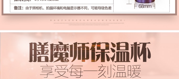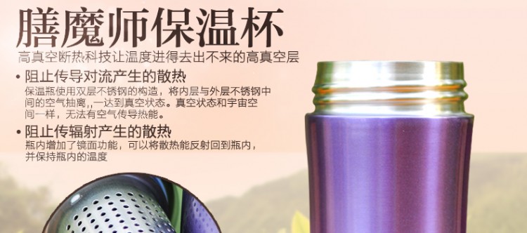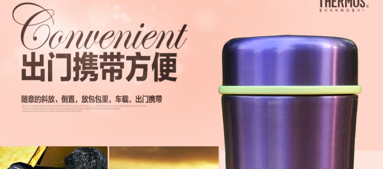 產(chǎn)品介紹:保高真空斷熱技術(shù),不銹鋼內(nèi)膽,在常溫下,沸水在膳魔師保溫杯中,6小時后依然能保證在61℃以上,外觀大方有活力膳魔師保溫杯表面使用了有絲絨質(zhì)感的彈性漆和烤漆,密封性能佳。