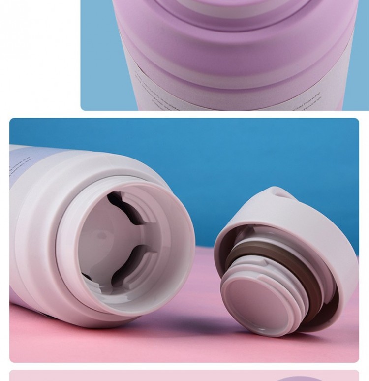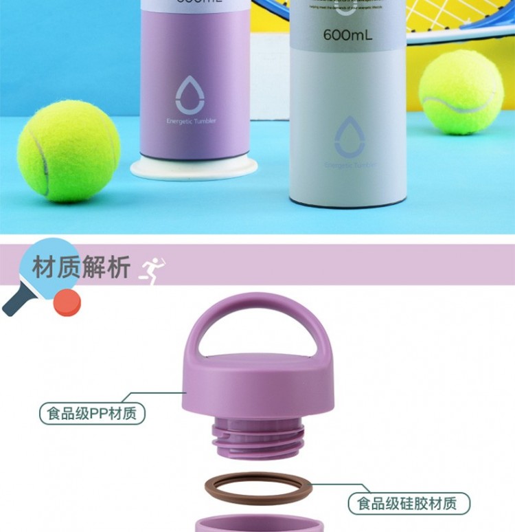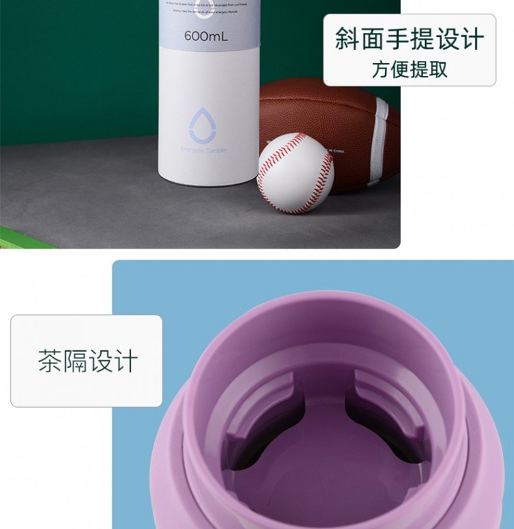 2、廣口+過濾隔板栓體,廣口方便清洗或放入大冰塊,過濾板可在喝水時阻擋冰塊;
