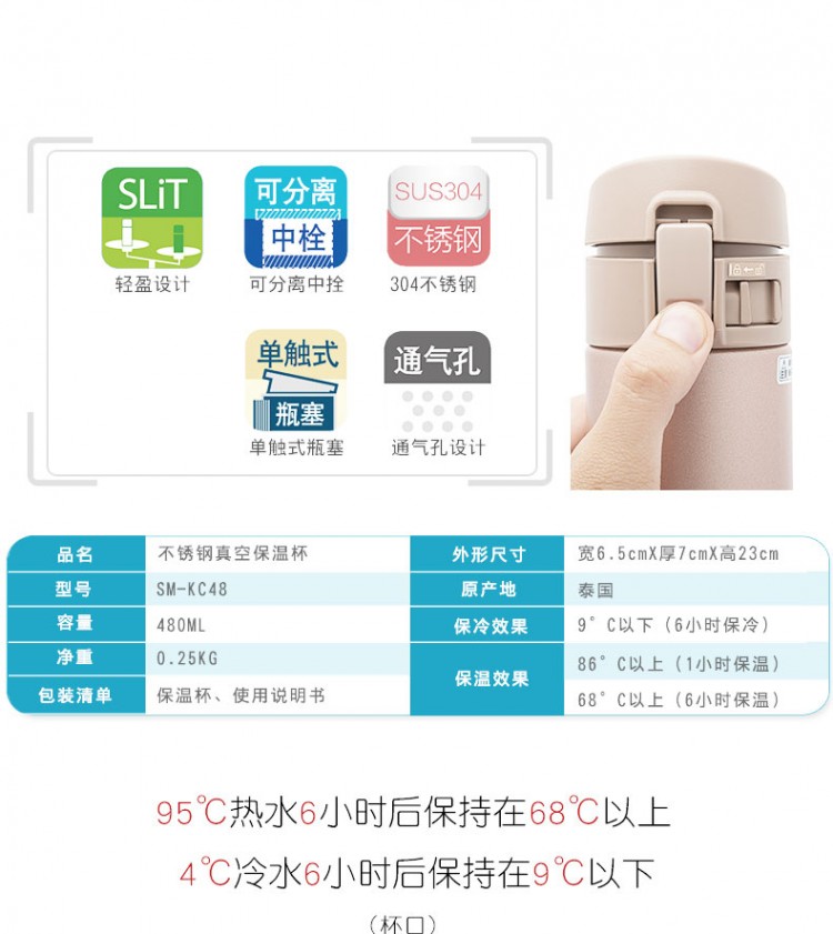 象印SM-KC48不銹鋼真空彈蓋保溫杯 四川成都象印水杯代理商