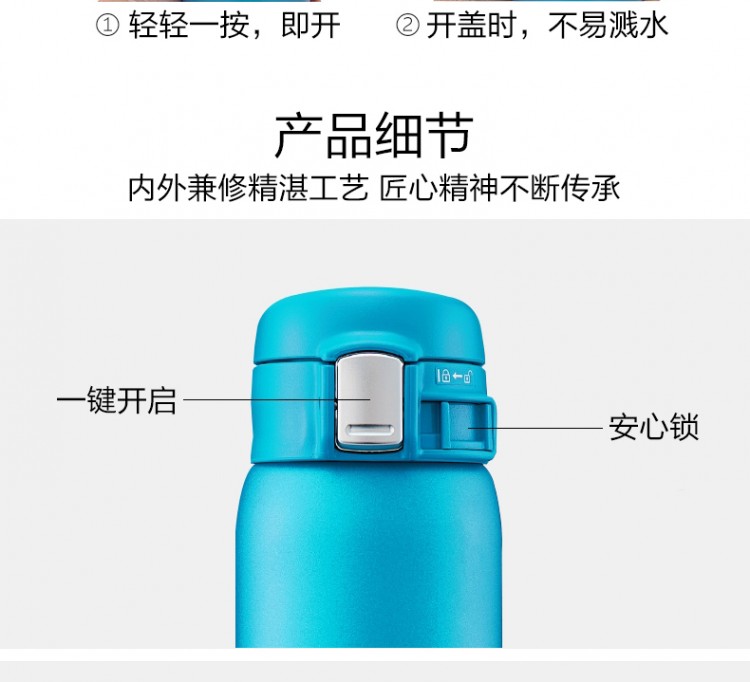 詳細信息 產(chǎn)品特點: 1.防粘涂層處理內(nèi)容器,易于清洗,不易附著污垢及異味; 2.杯子有除菌加工處理; 3.輕巧,便于攜帶,可放置包中; 4.整體可清洗、單觸式瓶塞。 5.保溫保冷兩用,一杯兩用經(jīng)濟實惠 ![]() ![]() ![]() ![]() ![]() ![]() ![]() ![]() |