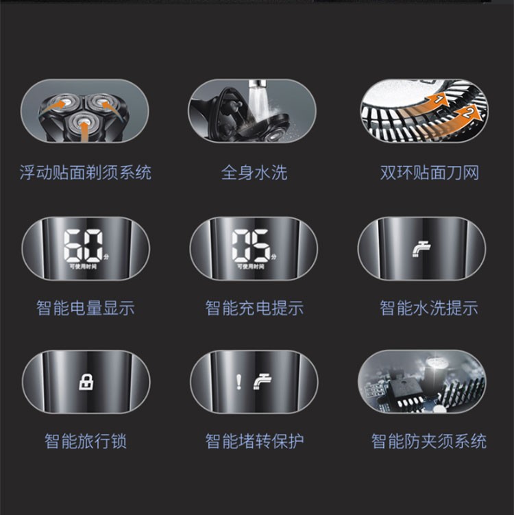 2.浮動(dòng)貼面剃須系統(tǒng),貼合多臉型。