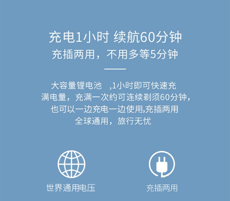 詳細(xì)信息 產(chǎn)品簡(jiǎn)介: 1.智能電量顯示、智能堵轉(zhuǎn)保護(hù)。 2.浮動(dòng)貼面剃須系統(tǒng),貼合多臉型。 3.雙環(huán)貼面刀網(wǎng),雙倍動(dòng)力舒適快剃。 4.彈出式修剪鬢刀.. 5.充電1小時(shí),約使用60分鐘. ![]() ![]() ![]() ![]() ![]() ![]() ![]() ![]() ![]() ![]() ![]() ![]() ![]() ![]() ![]()  |